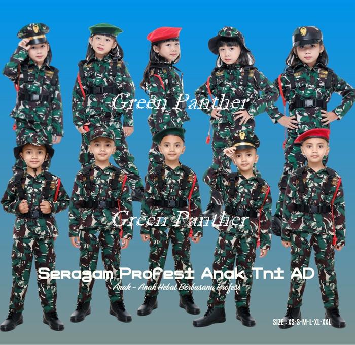 SERAGAM PROFESI ANAK BAJU SETELAN TNI AD ANAK LAKI LAKI PEREMPUAN FULLSET + SEPATU PLD SHOES ARMY TENTARA LORENG COWOK