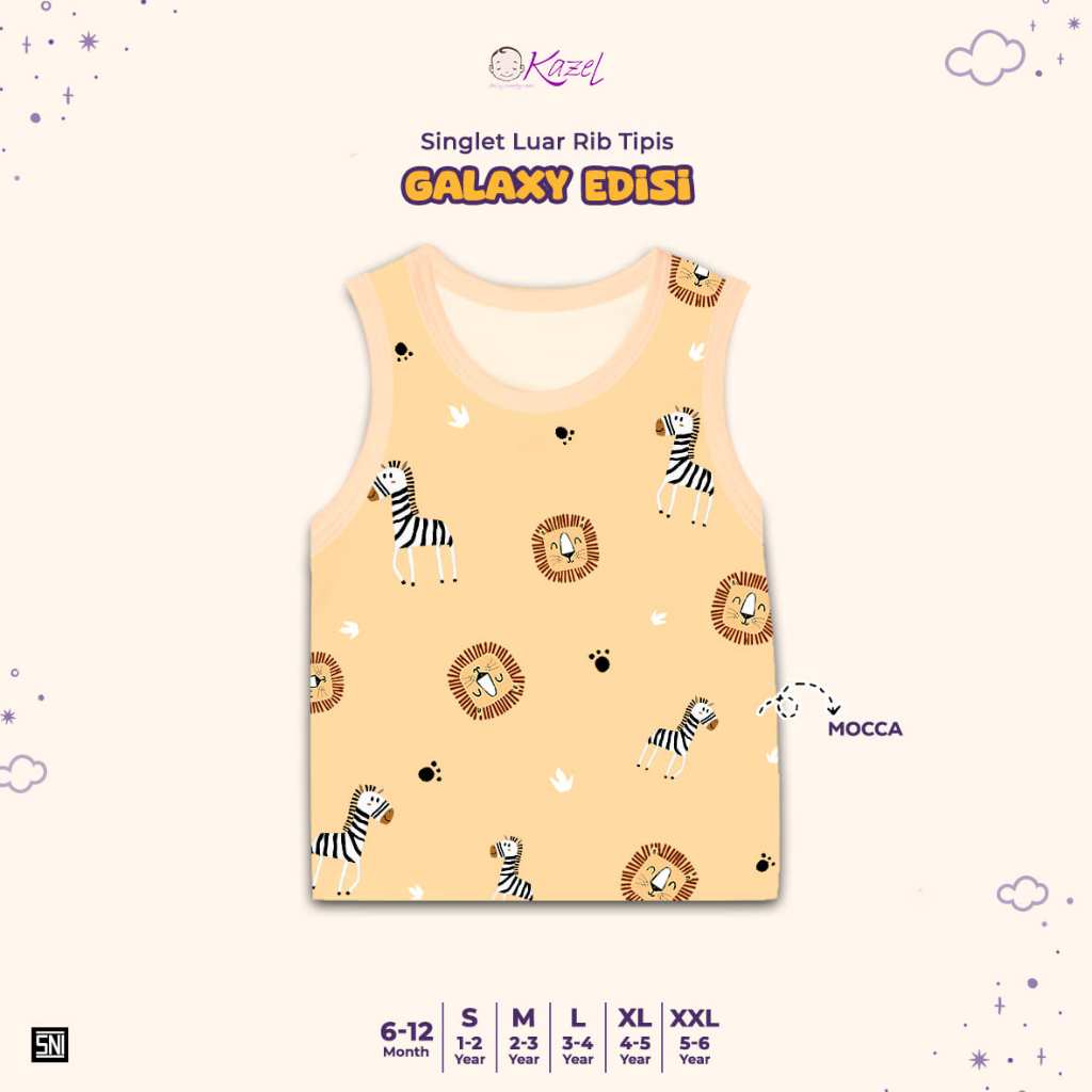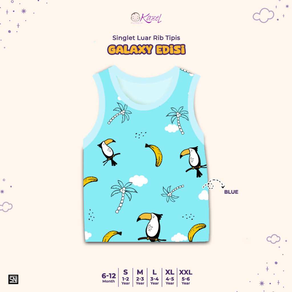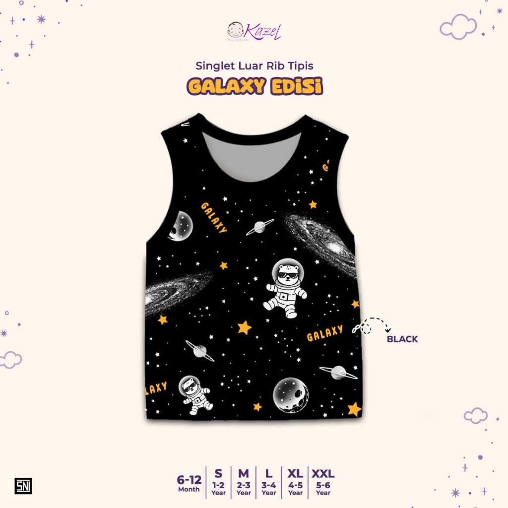 BUY 1 GET 1 FREE KAZEL Singlet Luar Rib Tipis Galaxy Edition (3 Pcs) 6Bln - 5 Tahun