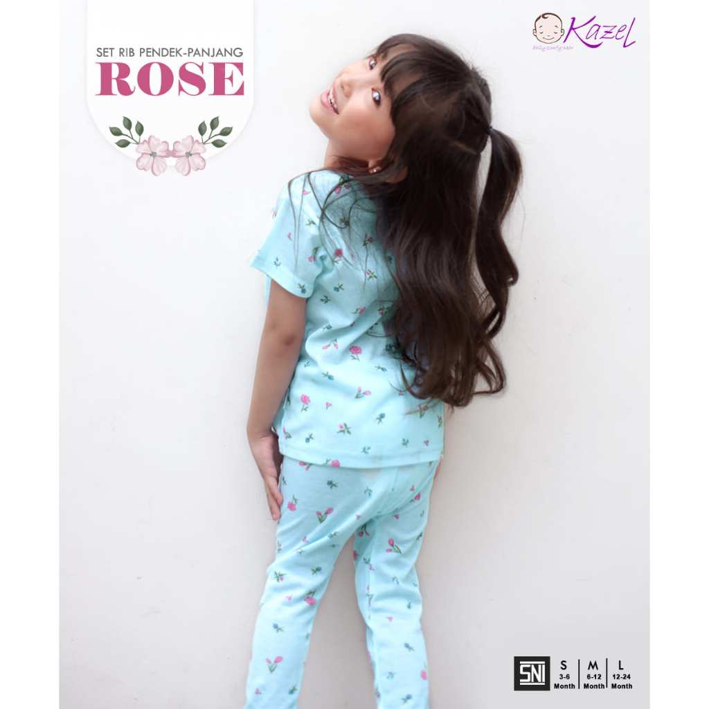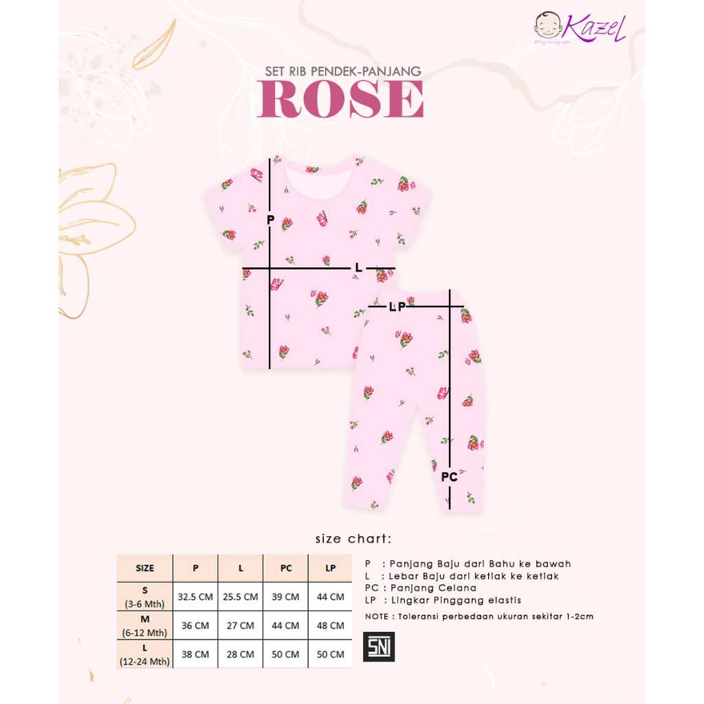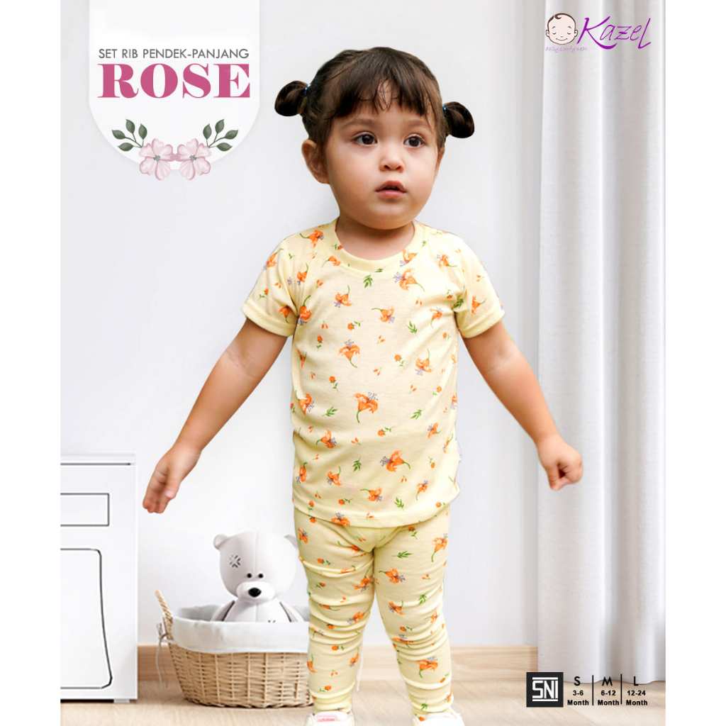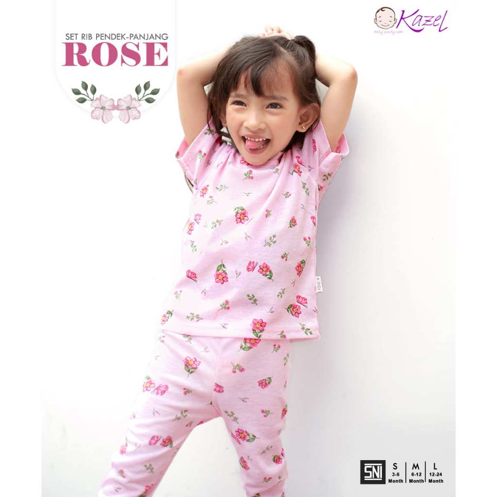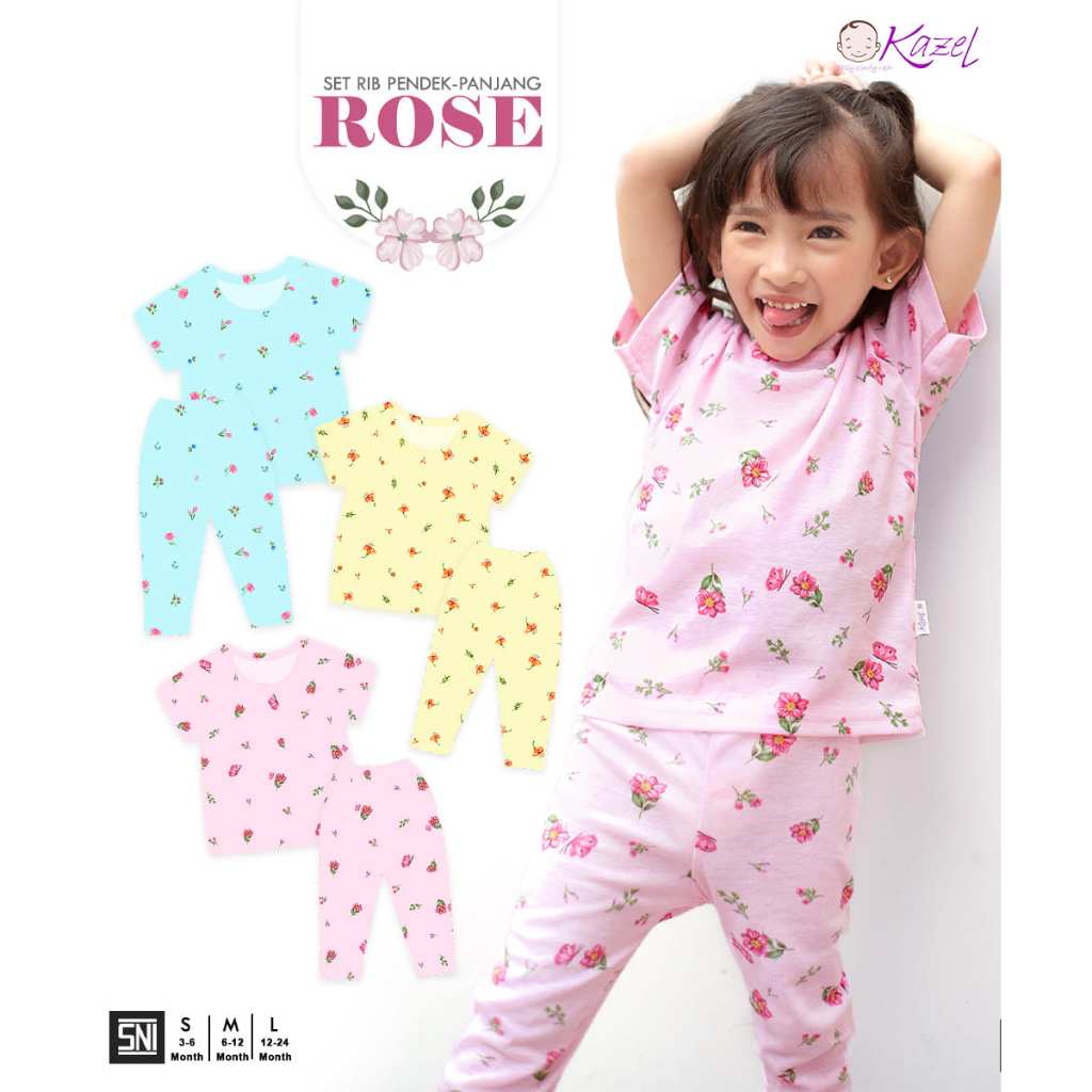 KAZEL Setelan Rib Pendek Panjang Anak Perempuan - Rose Edition BIG SIZE 1 - 5 Thn (3Stel)