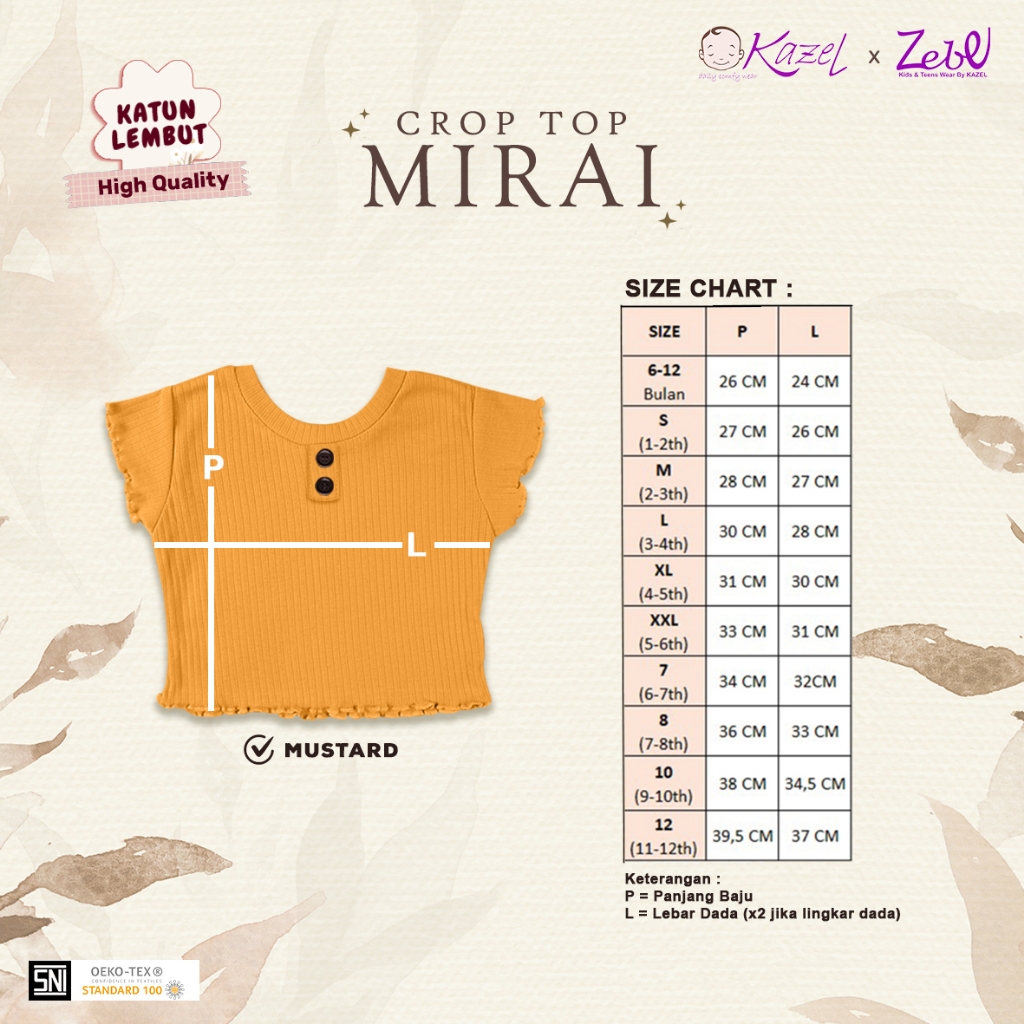 Kazel x Zebe Mirai Crop Top - Button (1Pcs) 6Bulan - 12Tahun