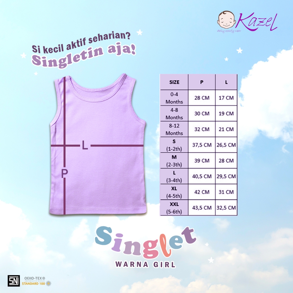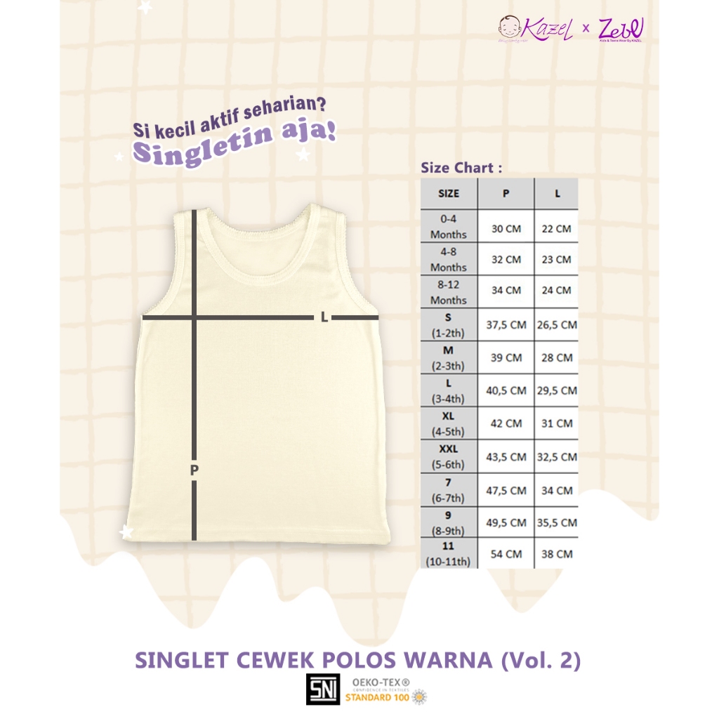 KAZEL Zebe Singlet Cewek Polos Warna Vol. 1 & 2 (6 Pcs/12Pcs) 0-11 Tahun