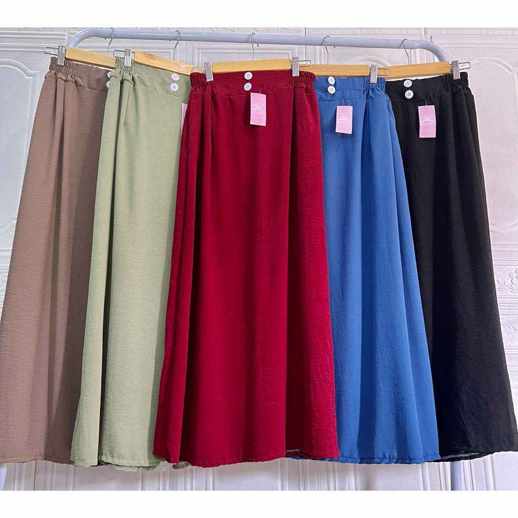 Rok Kancing Crinkle Airflow/Rok Panjang Wanita Jumbo