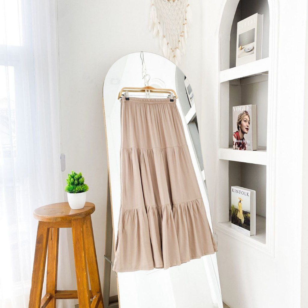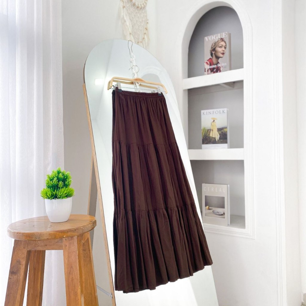 Ima Skirt Bawahan Rok Wanita Muslim Modern Kekinian Matt Katun Rayon Polos Basic OOTD Casual Daily Fashion Terlaris