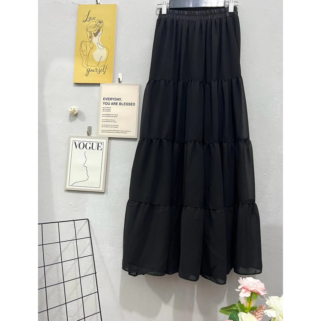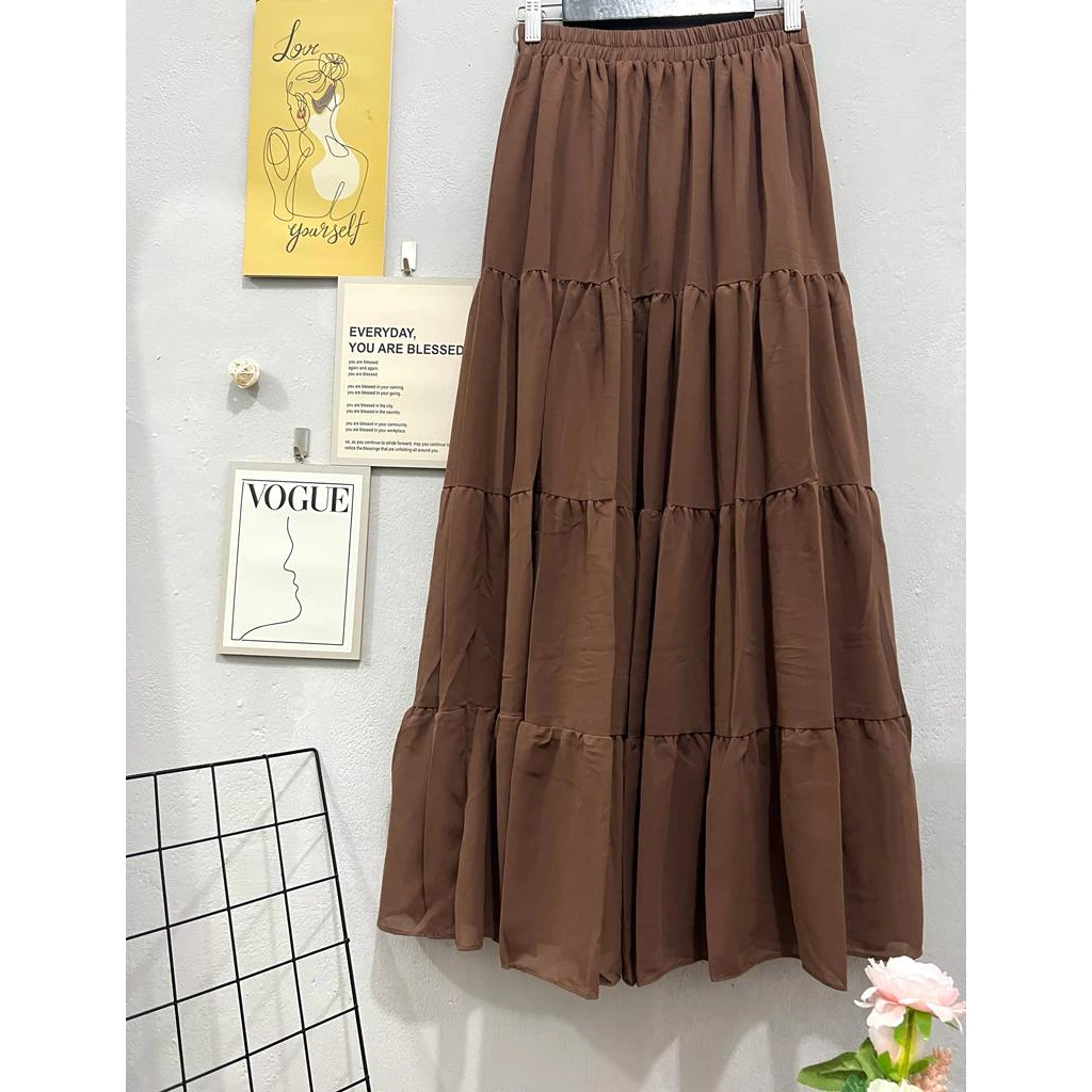 rok panjang beraksen 4 susun | long skirt korean style | rok wanita muslim