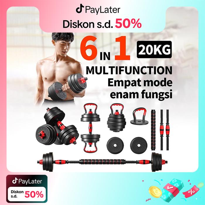 PROMO 8.8 DUMBBELL BARBEL SET PERALATAN FITNESS 20 KG BISA DISAMBUNG TIANG ANGKAT OLAHRAGA OTOT 20KG