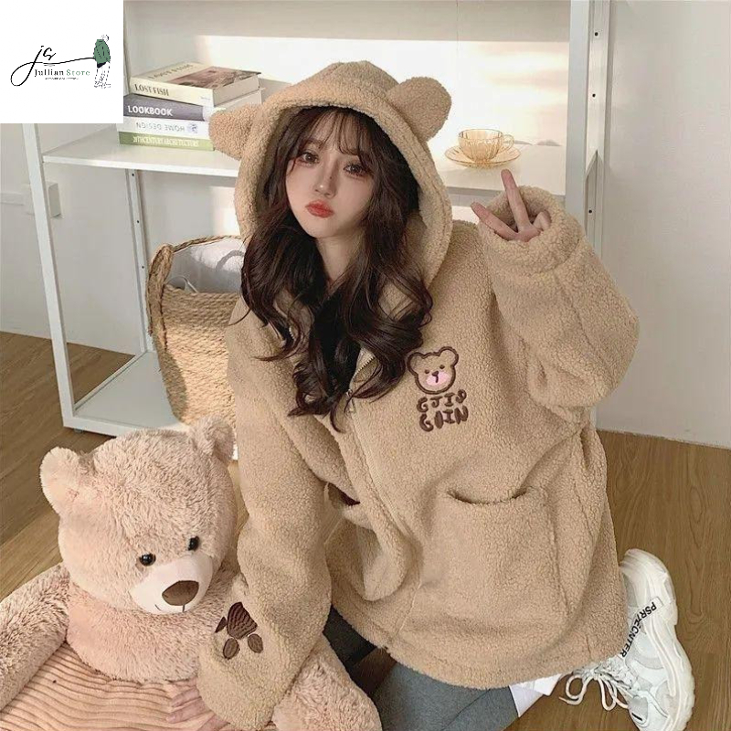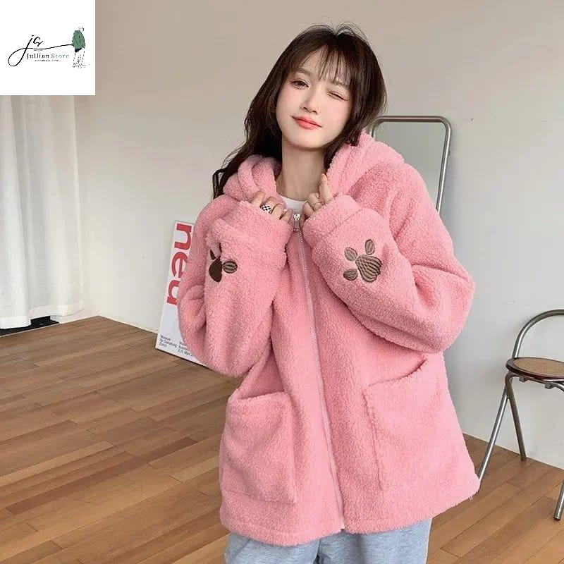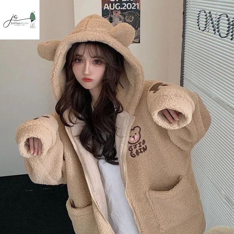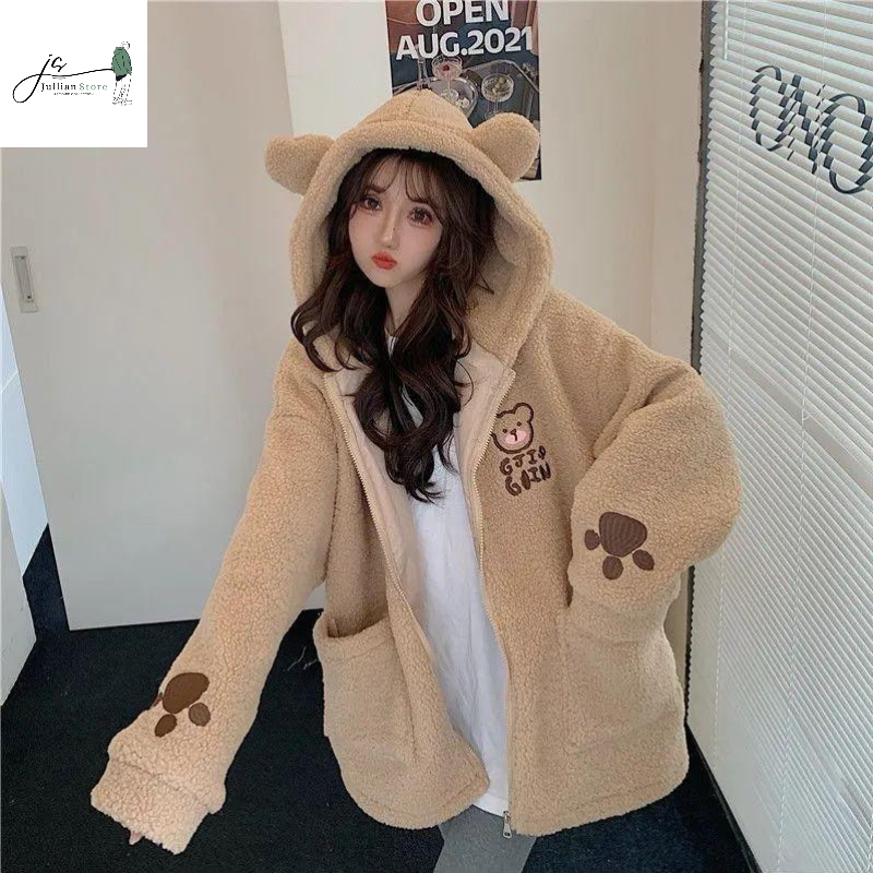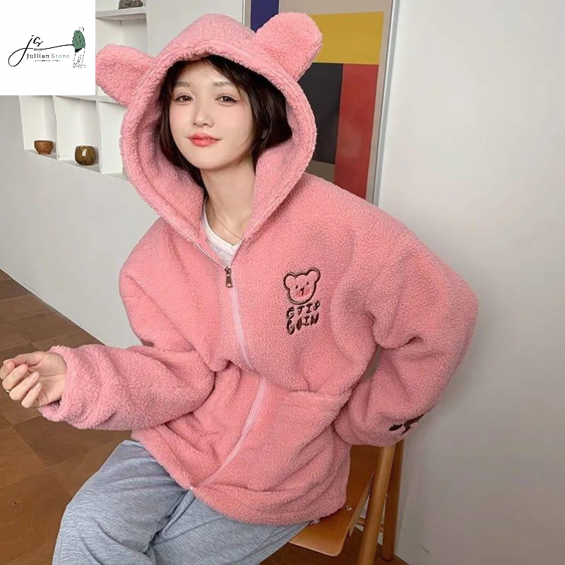 JULLIAN STORE JAKET SHERPA CUTE GIRL KUPING BERUANG / SHERPA BEAR JACKET