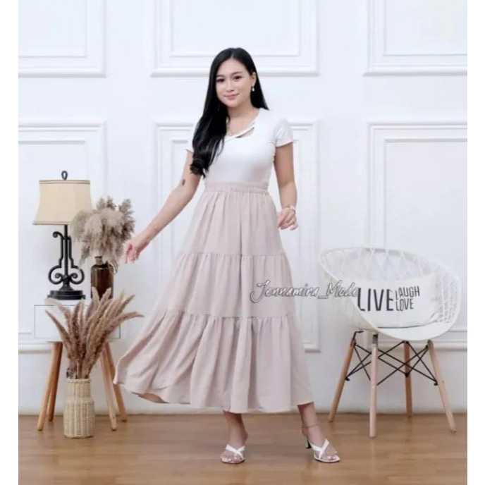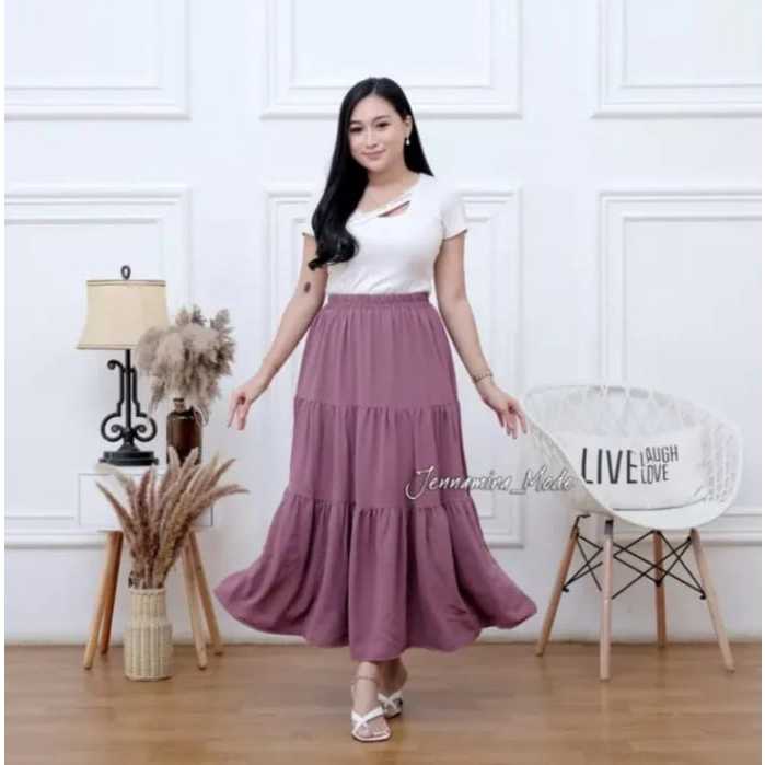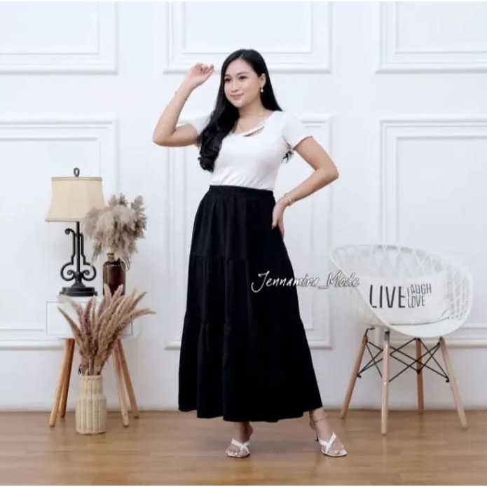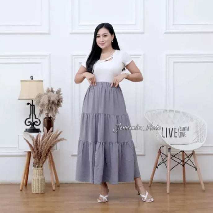 Rok Panjang Beraksen 3 Susun | Long Skirt Korean Style | Rok Wanita Muslim