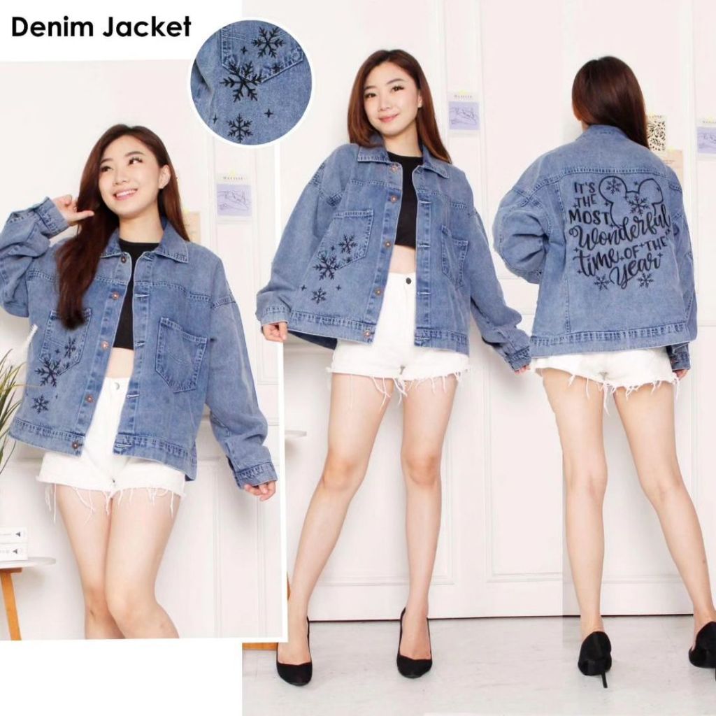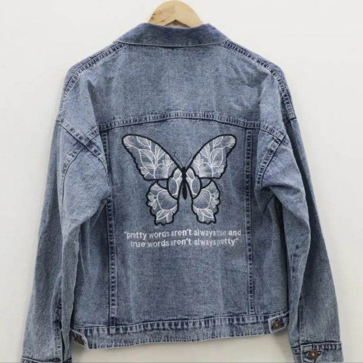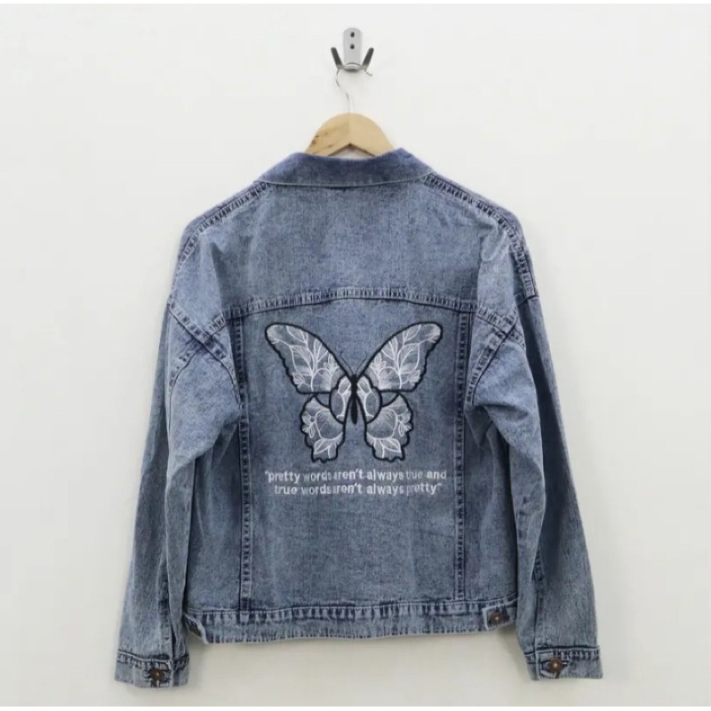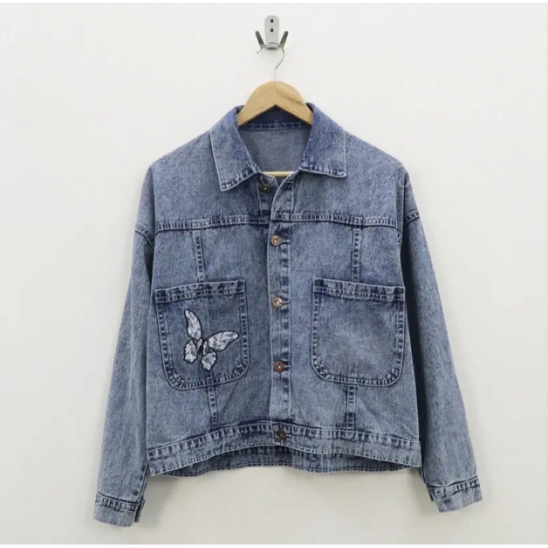JAKET WANITA JEANS TERBARU - JAKET JEANS BORDIR KUPU-KUPU - JAKET WANITA IMPORT