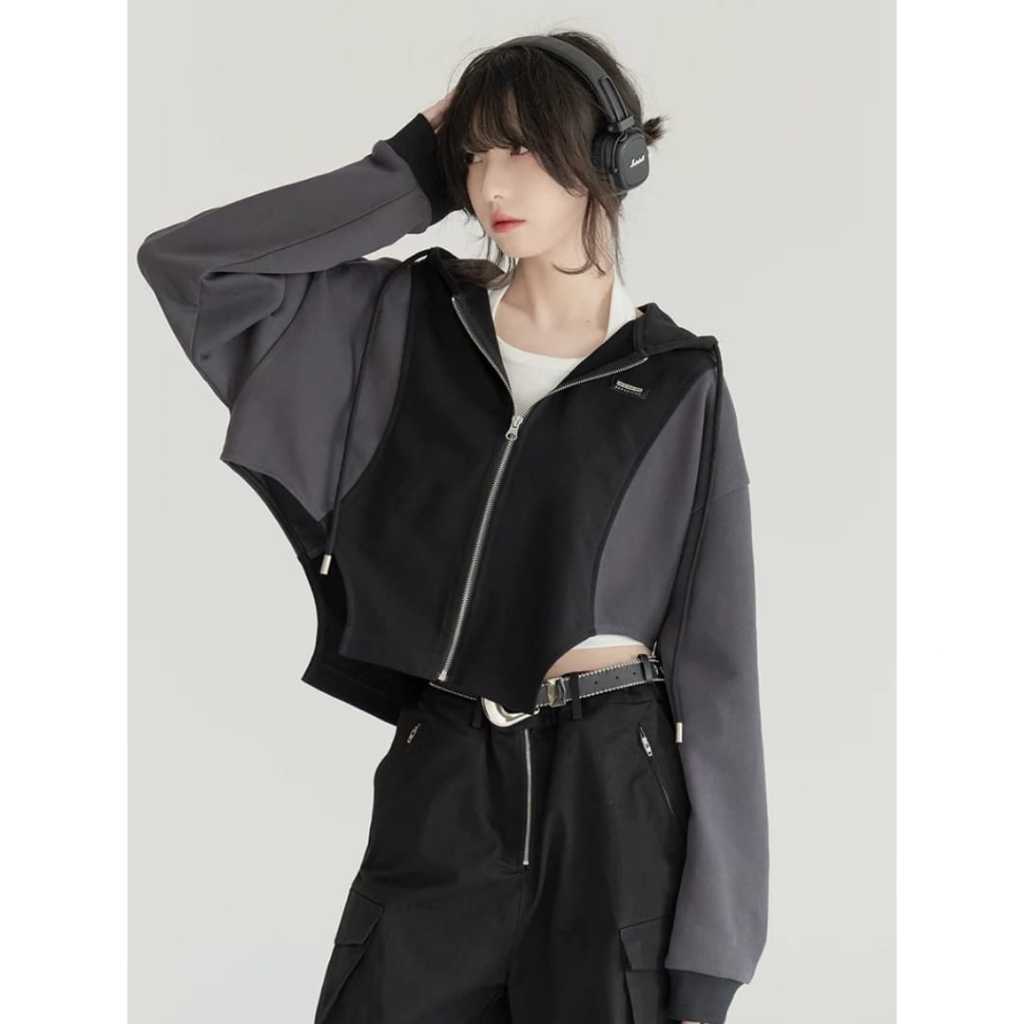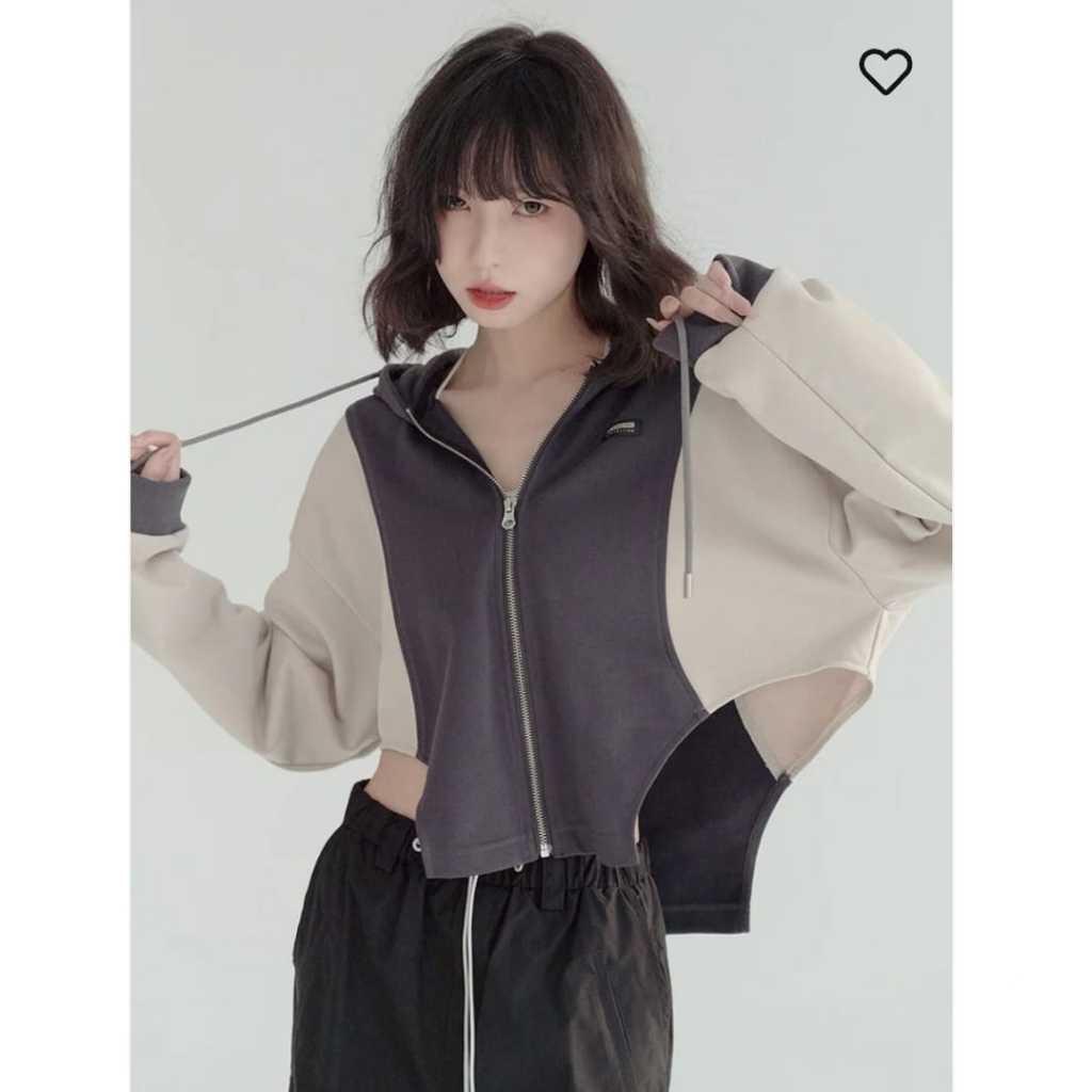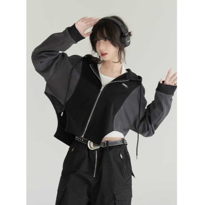 JAKET WANITA KOREAN STYLE PATCHWORK COMBIE COLLOR HOODED | JAKET CROP ZIPPER HOODIE WANITA