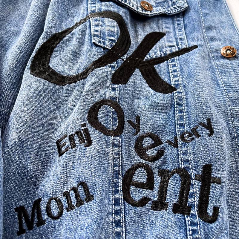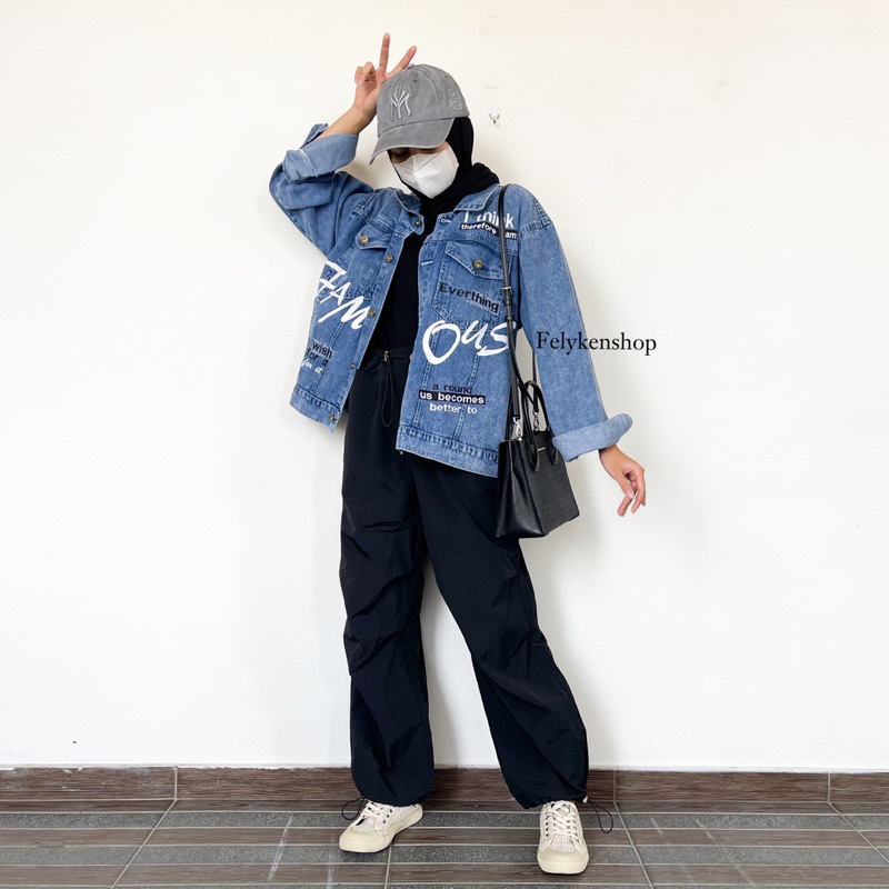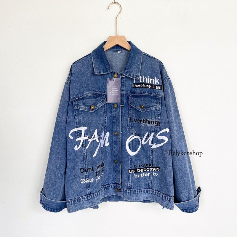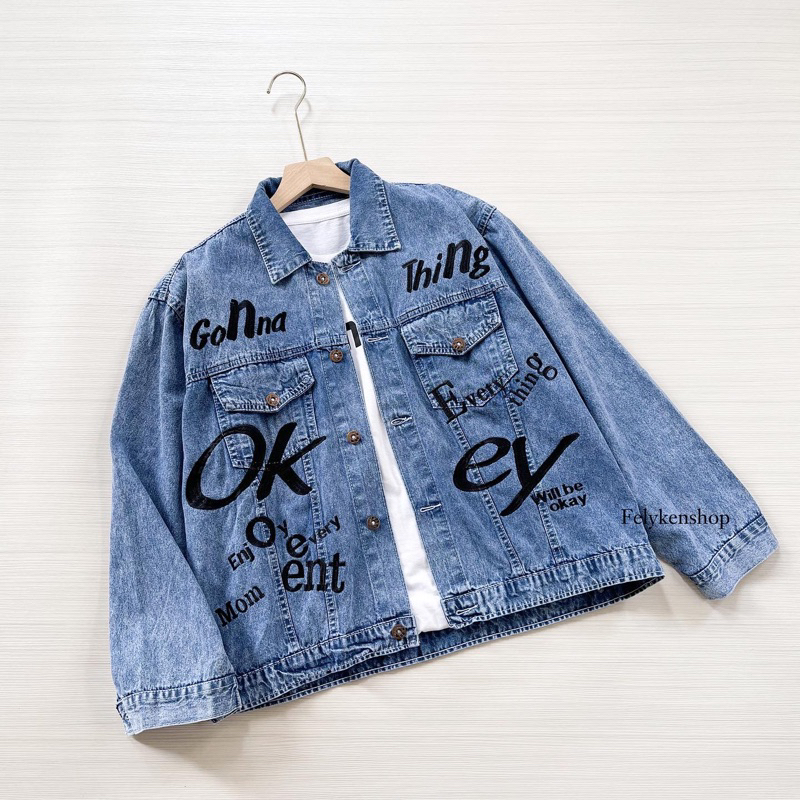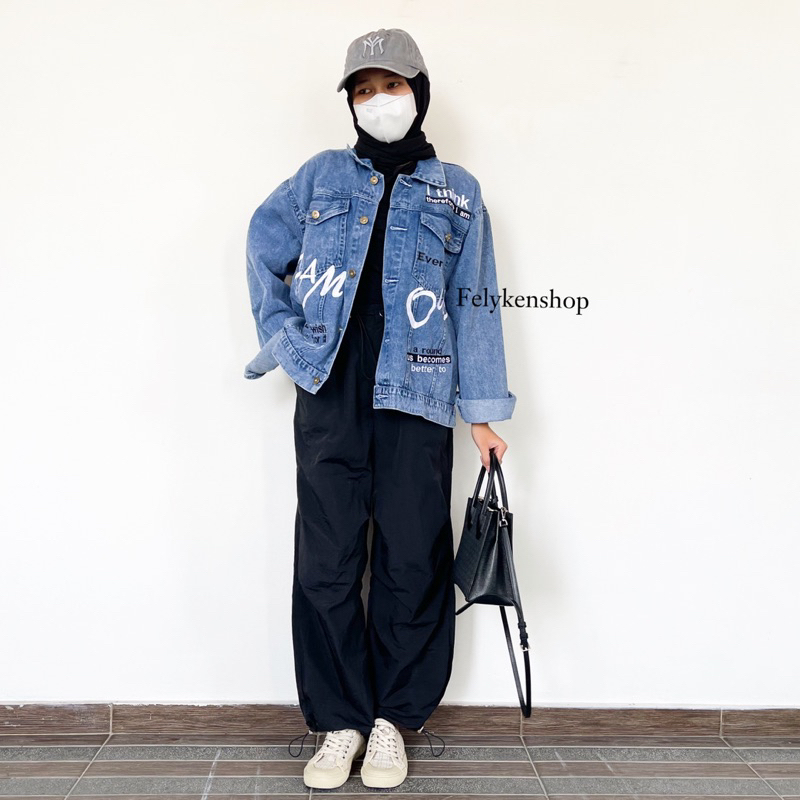 OVERSIZE JAKET JEANS BORDIR WORDS KODE MP 926 / JAKET WANITA / JAKET BORDIR UNISEX
