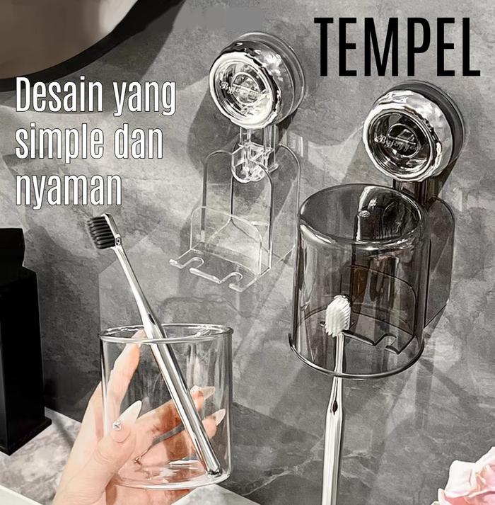 TERLARIS GANTUNGAN GEAS TEMPAT SIKAT GIGI KAMAR MANDI TOOTHBRUSH CUP HODER R016 HITAM
