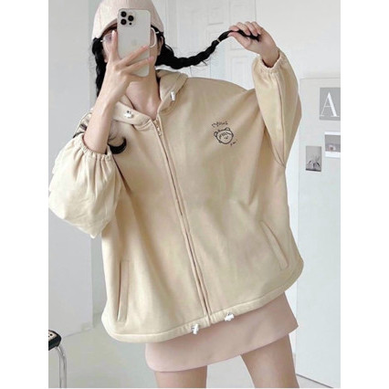CUTE GIRL JACKET HOODIE ZIPPER WANITA OVERSIZE KOREAN STYLE SWEATER REMAJA KEKINIAN