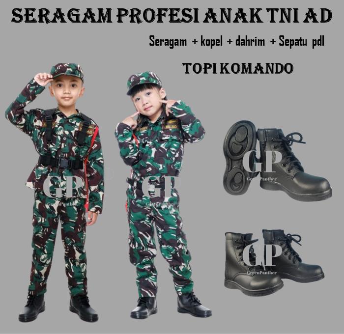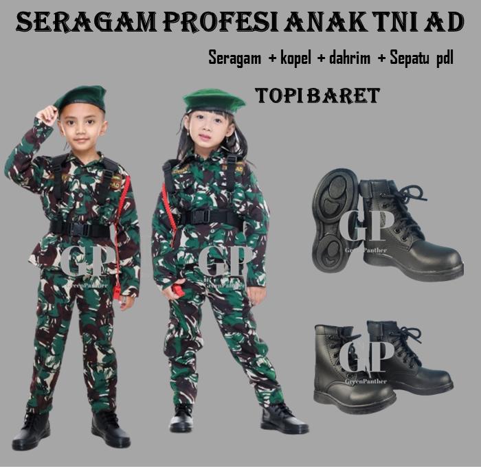 SERAGAM PROFESI ANAK TNI AD LAKI LAKI PEREMPUAN FULLSET + SEPATU PLD SHOES ARMY TENTARA LORENG COWOK CEWEK