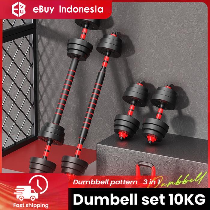 TERLARIS DUMBBE BARBE SET PERAATAN FITNESS 10 KG BISA TIANG ANGKAT 10KG