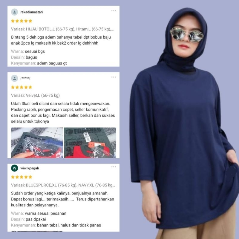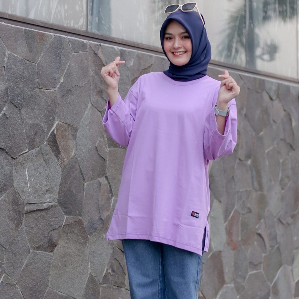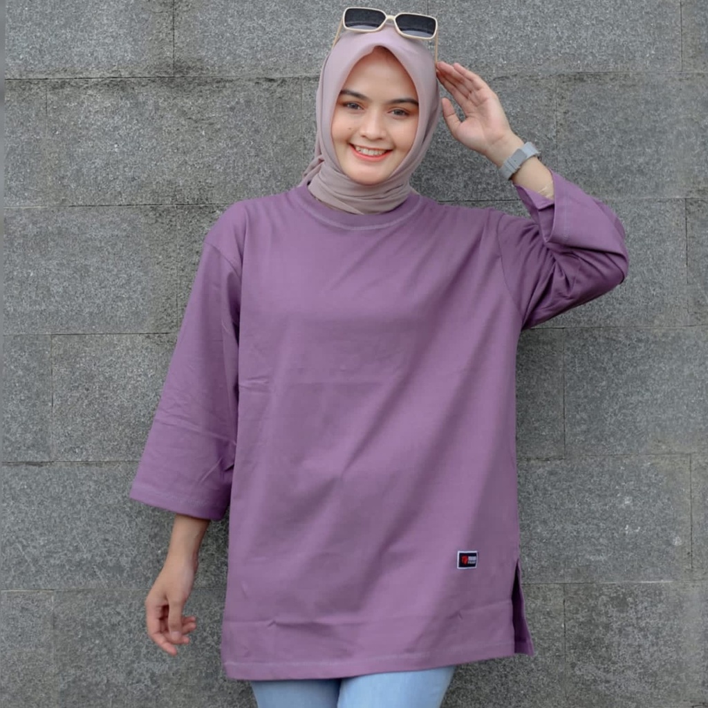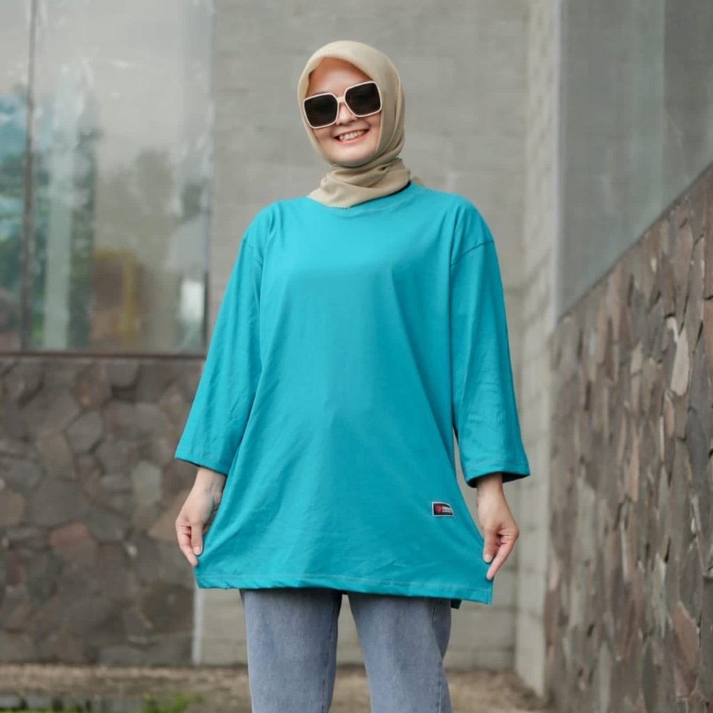 Atasan T shirt Basic Forever oversize7/8 top kaos jumbo polos wanita hijab lengan 7/8