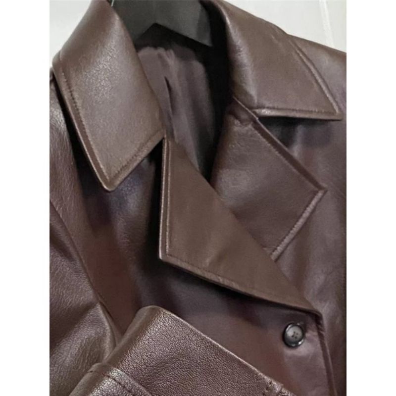 Long Coat Wanita Caramel / Jaket Jubah / Semi Kulit Wanita Vintage