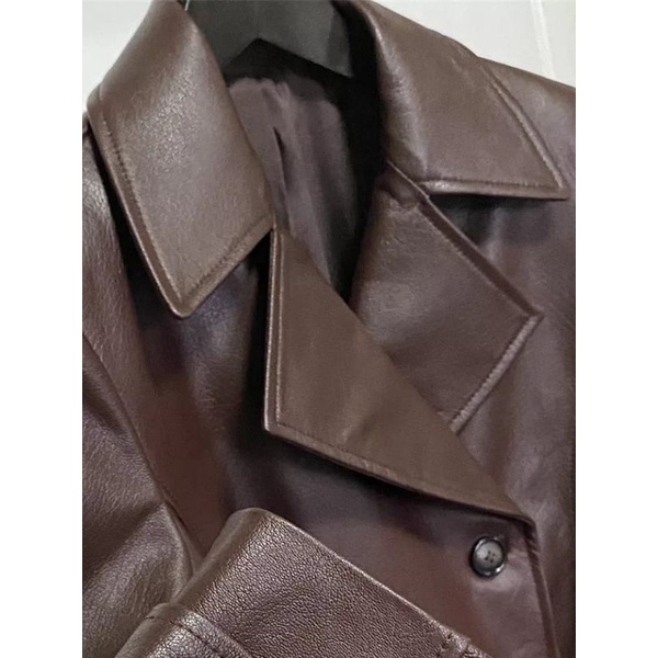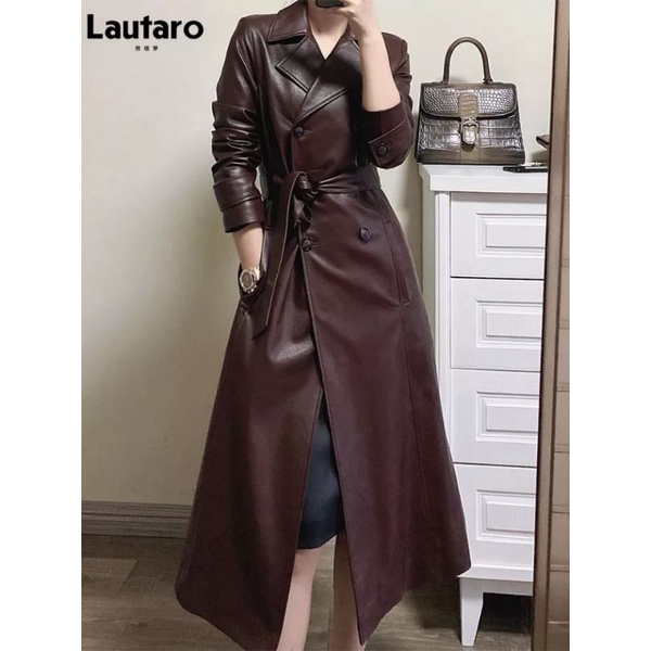 Long coat wanita caramel/jaket kulit/Jaket leather/jaket jubah semi kulit wanita vintage