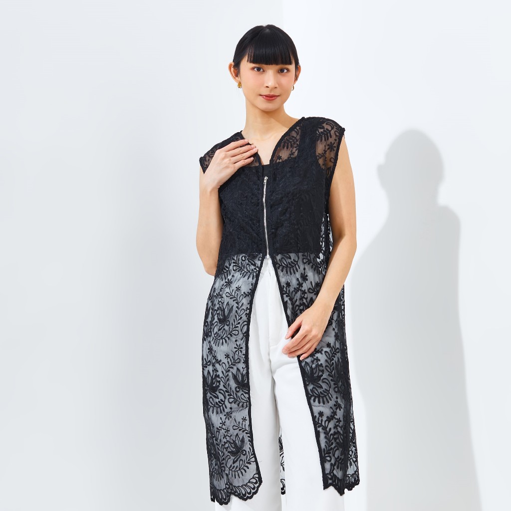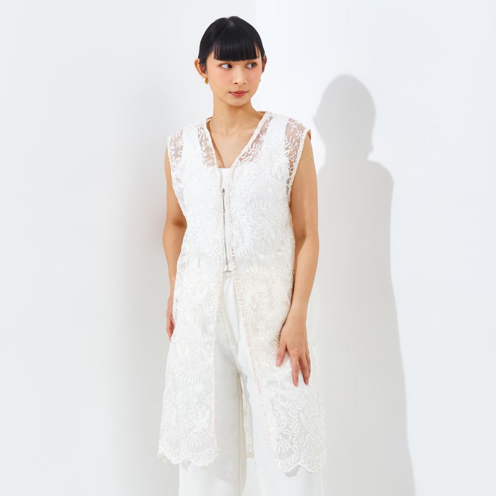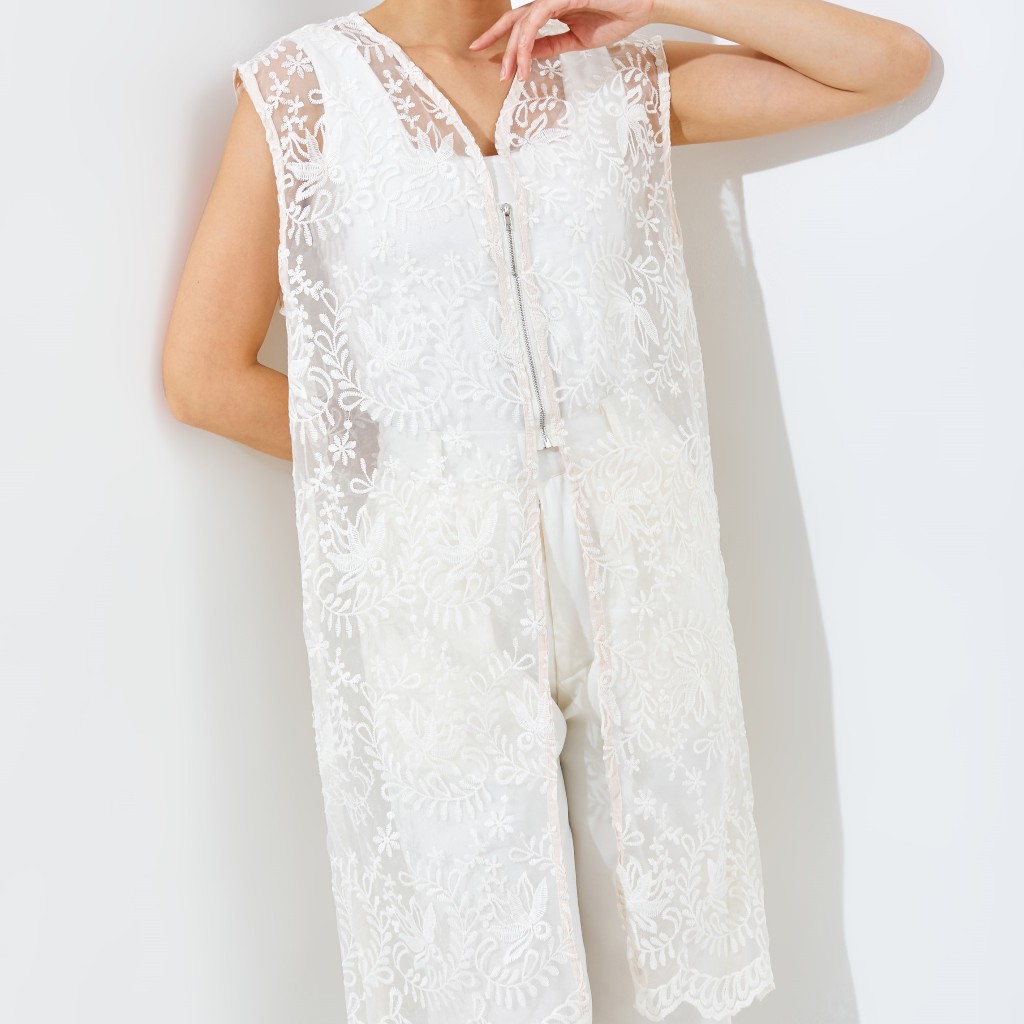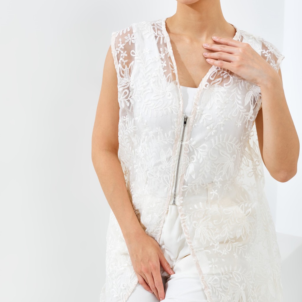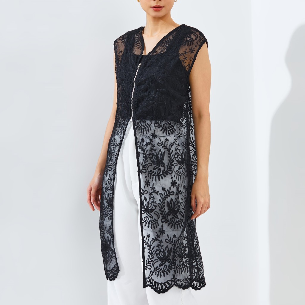 PUKKA Brooklyn Vest (Rompi Lace Brokat Panjang Resleting)