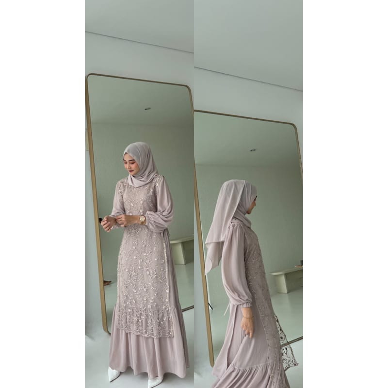 [New] Sintia Dress Inner + Outer Brukat Tile Premium / Oneset Dress Kondangan Ceruty Brukat Plus Outer