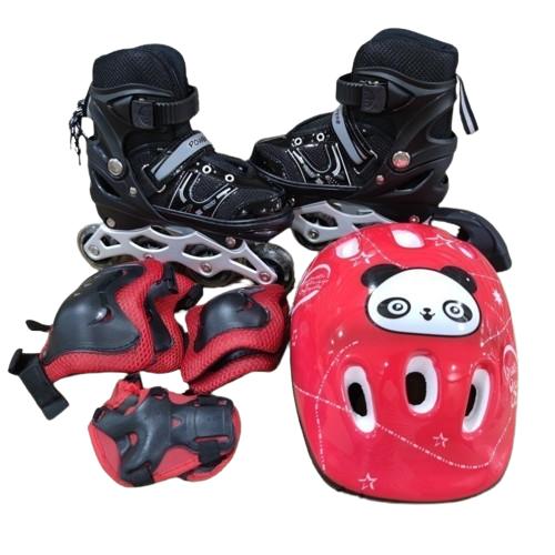 PROMO 8.8 SEPATU RODA ANAK INLINE PVC ( RODA PLASTIK) FULL SET BIRU M