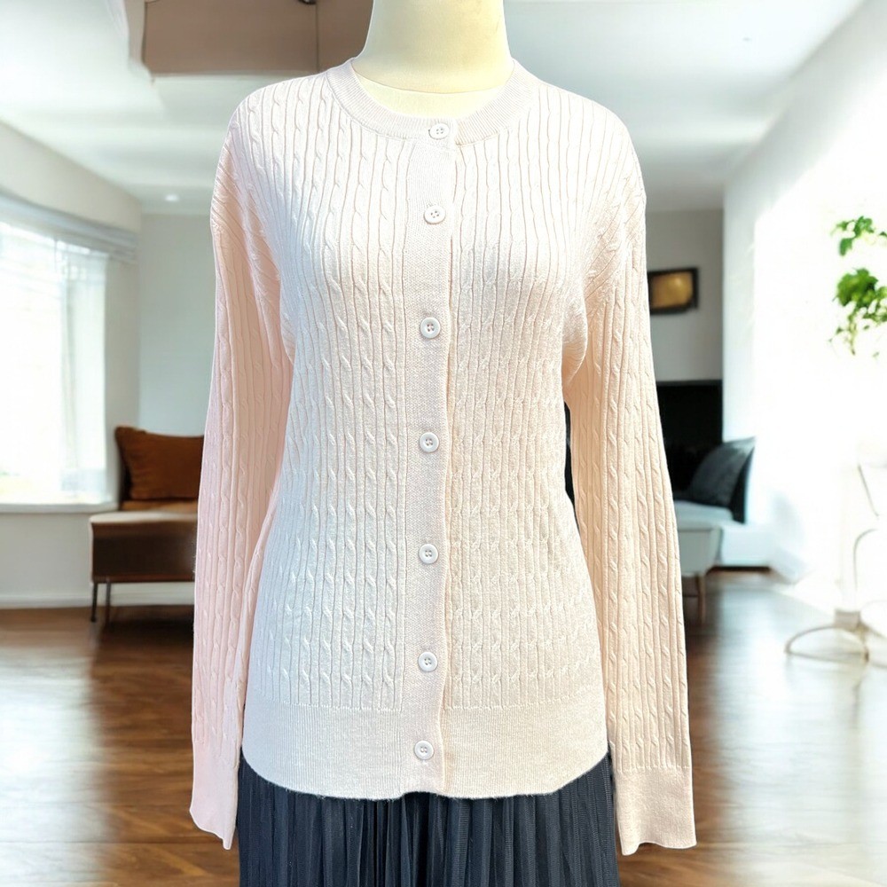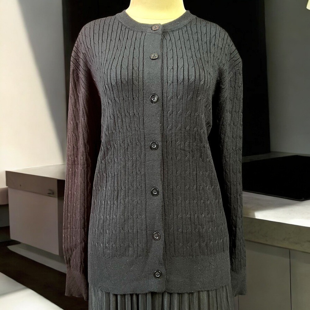AVENUE B197 cardigan wanita model kepang polos lengan panjang kancing hidup