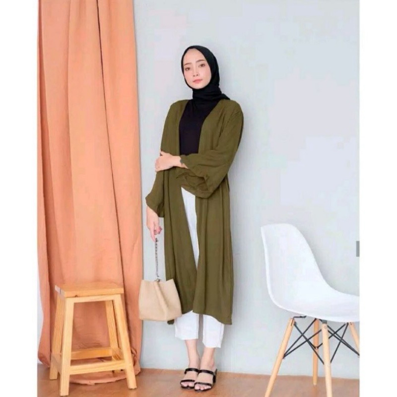Yuuna Long Outer Wanita Katun Rayon Adem Nyaman