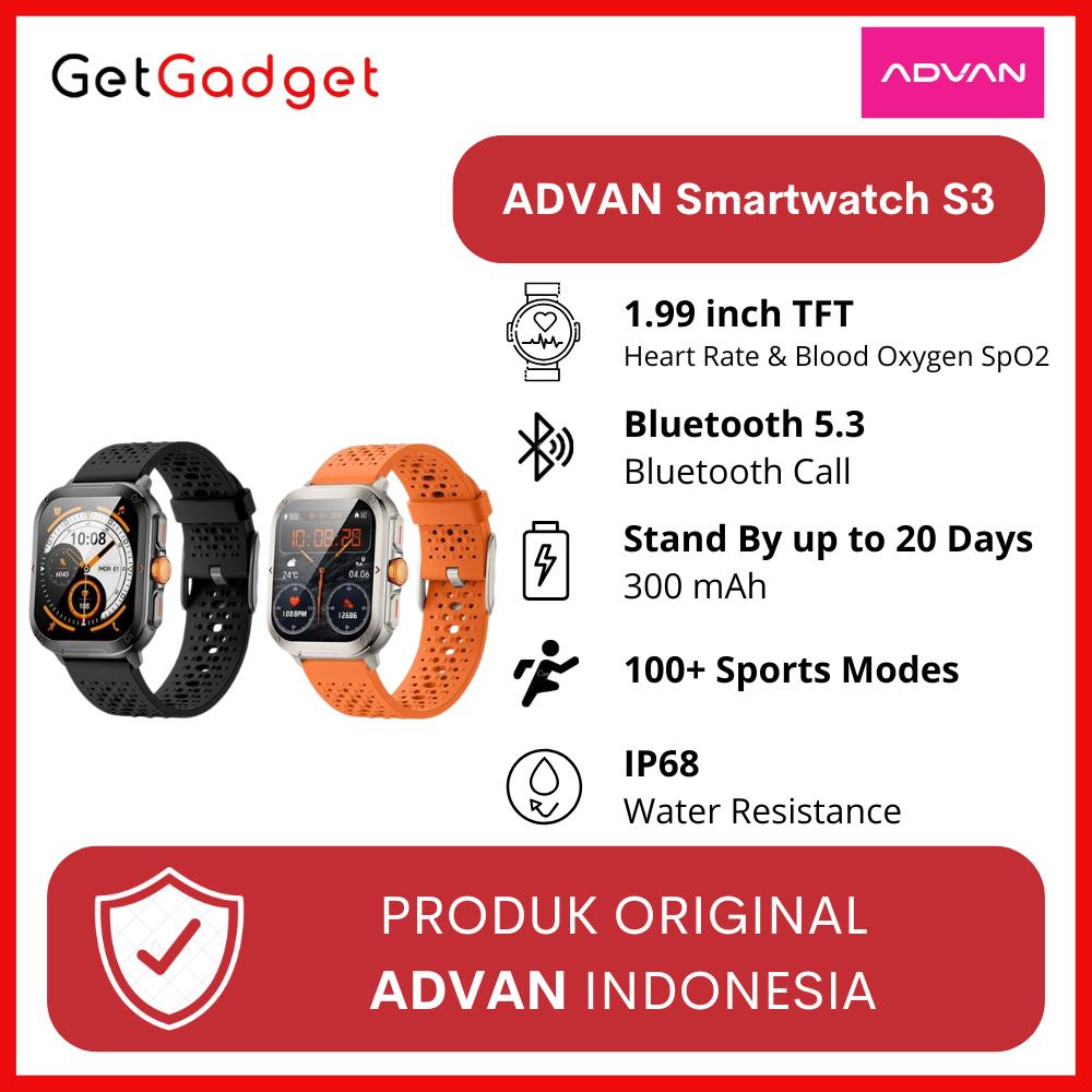 Smartwatch Advan S3 1.99 inch Bluetooth Call SpO2 IP68 Waterproof New Original Garansi Resmi