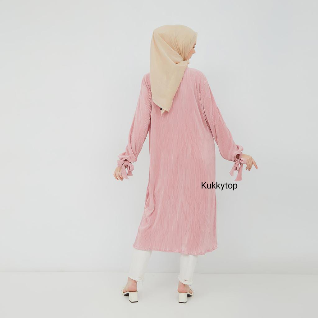 Kukky T0P Outer Cardigan Plisket Panjang Terbaru Atasan Wanita Fashion Muslim Korean Style 12377