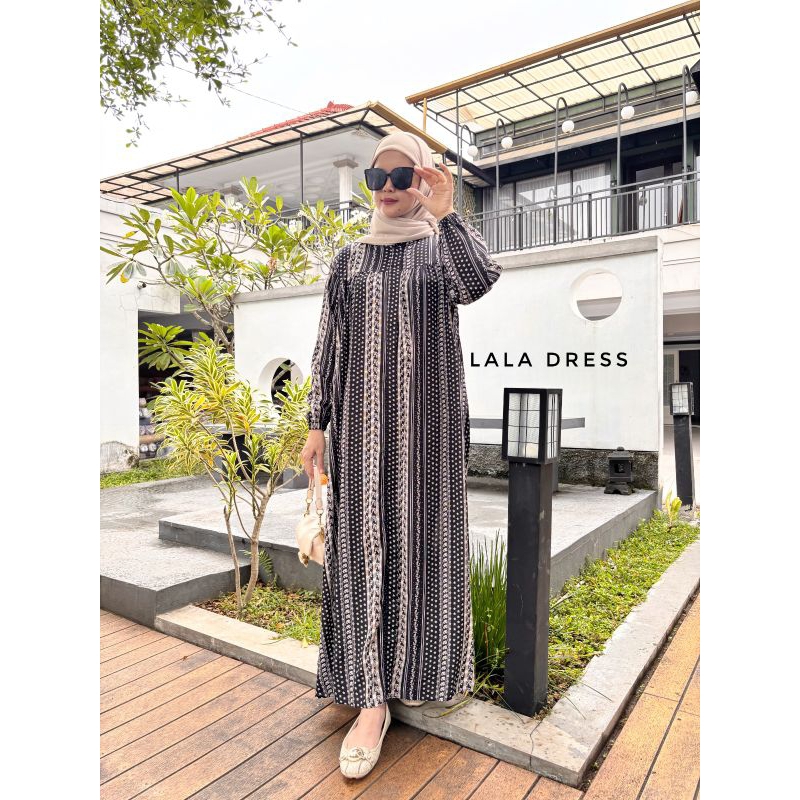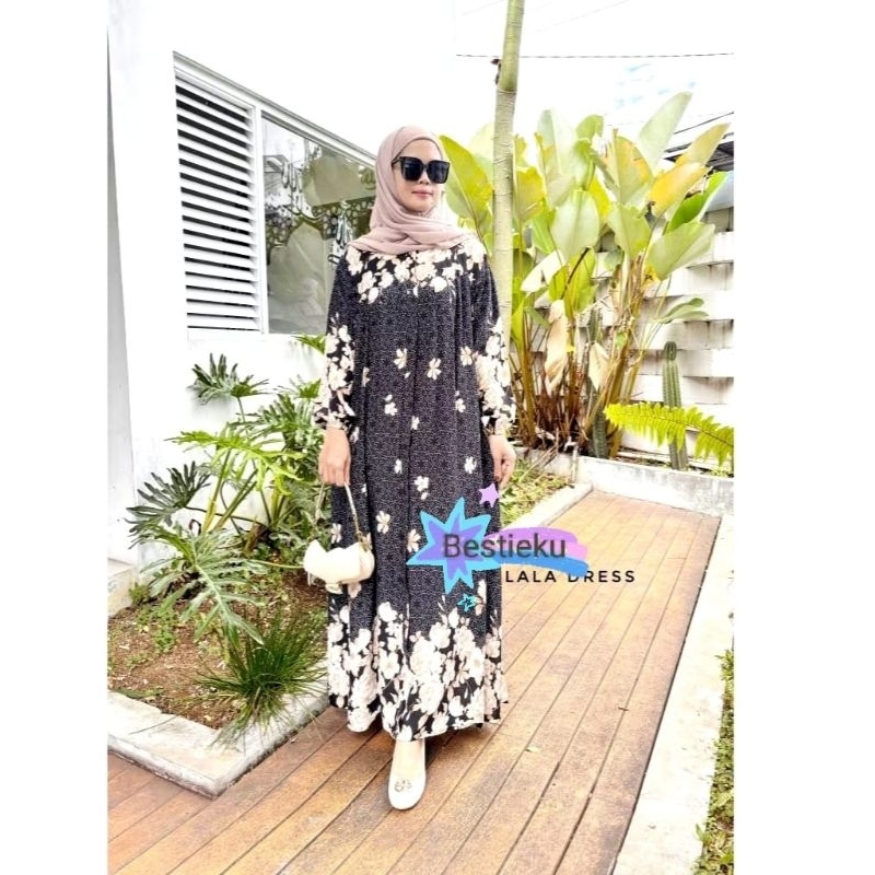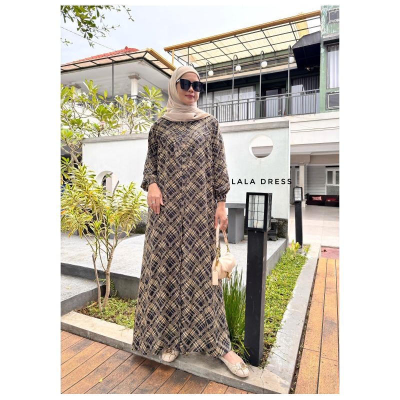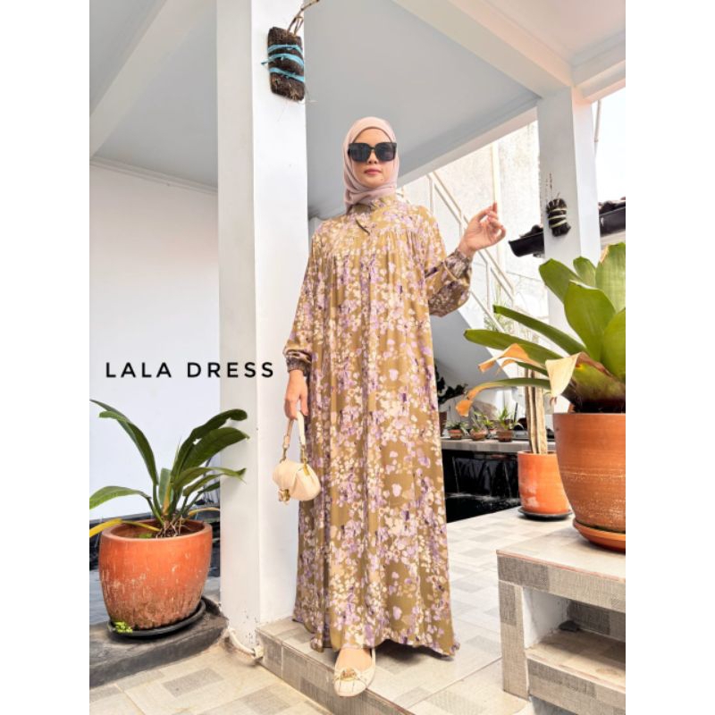 Lala Dress Motif Gamis Dewasa Busui Friendly Bahan Super Adem Outfit Muslimah Kekinian Ld 120 Cm