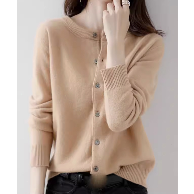 AVANUE.OUTLET 003 cardigan rajut wanita polos lengan panjang model kancing hidup