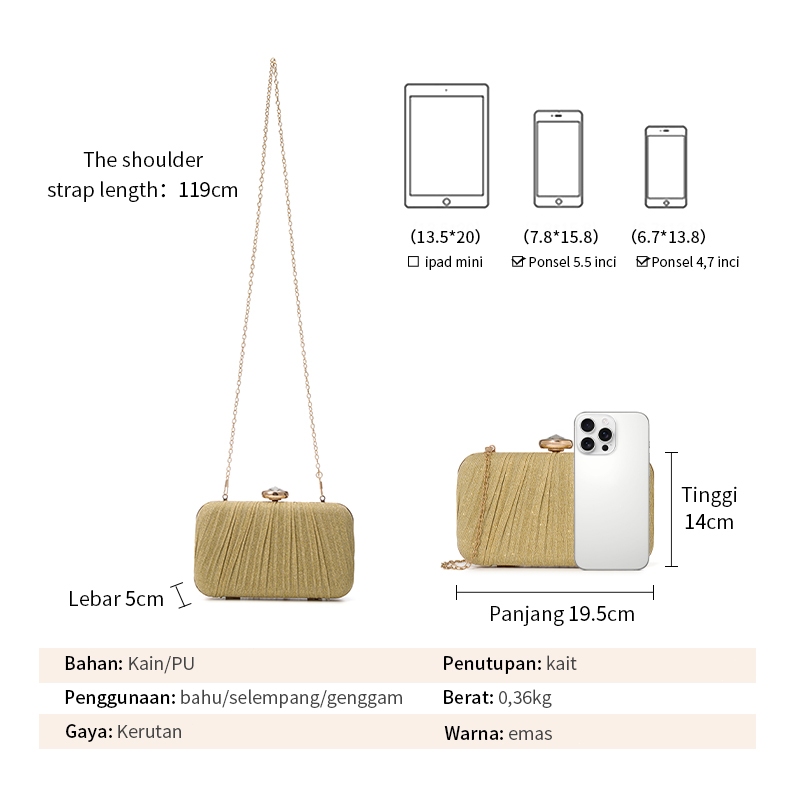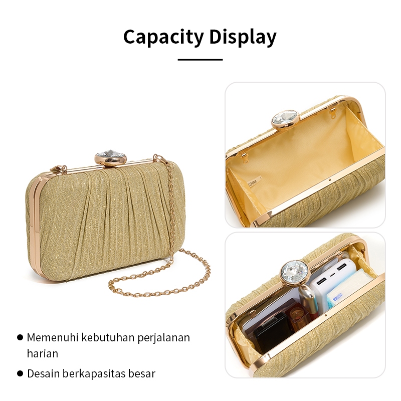 Tas Clutch Wanita Party Tas Selempang Elegan Tas Pesta Kondangan Glitter EM44S Rantai Clutch Bag