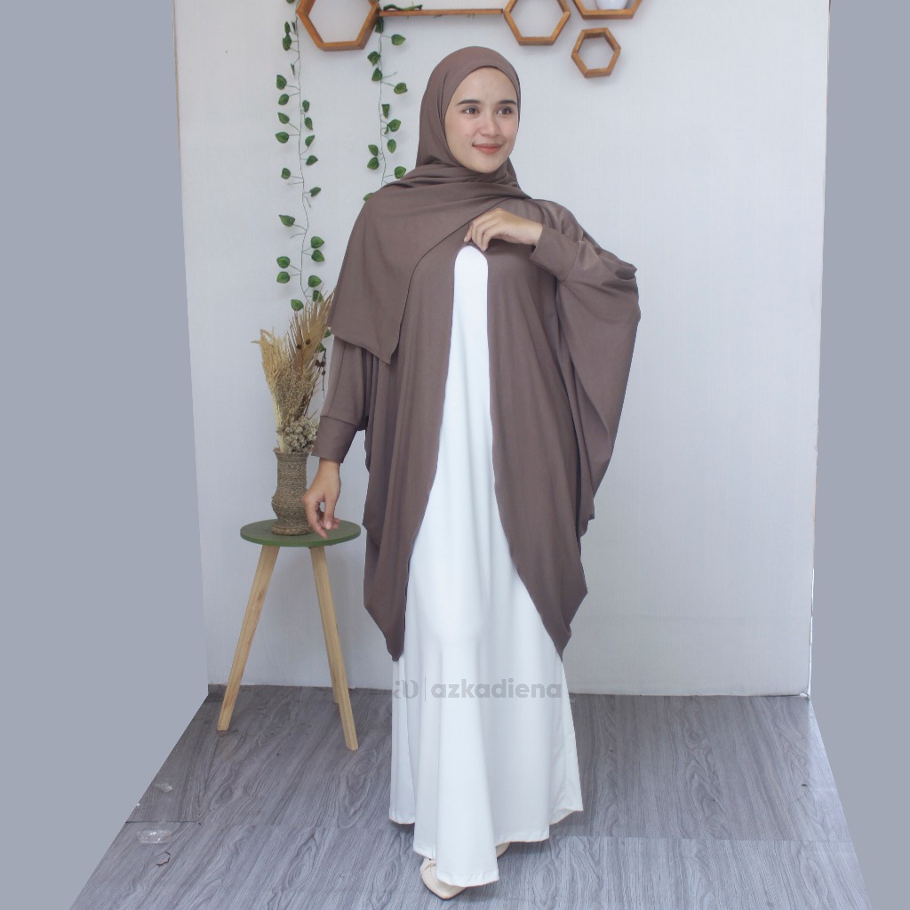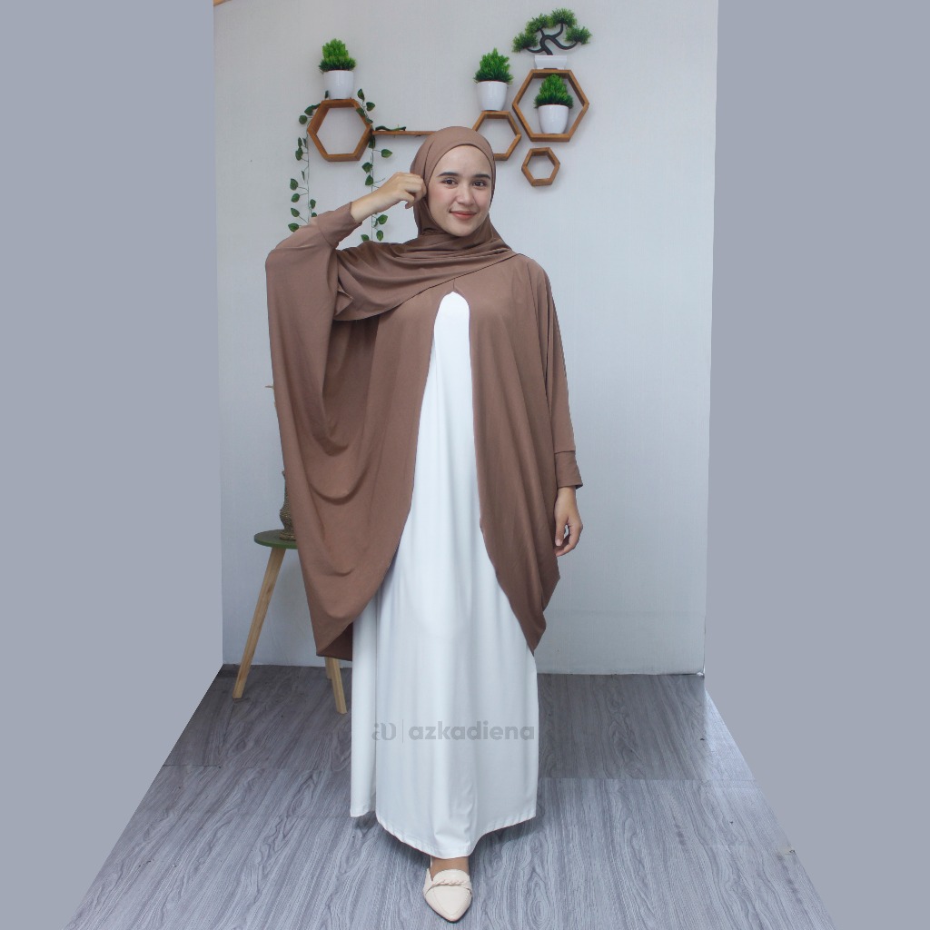Azkadiena Alika Gamis Syar'i One Set 4in1 Set Jilbab Abaya Ciput Outer Dress lebaran Batwing Kaftan