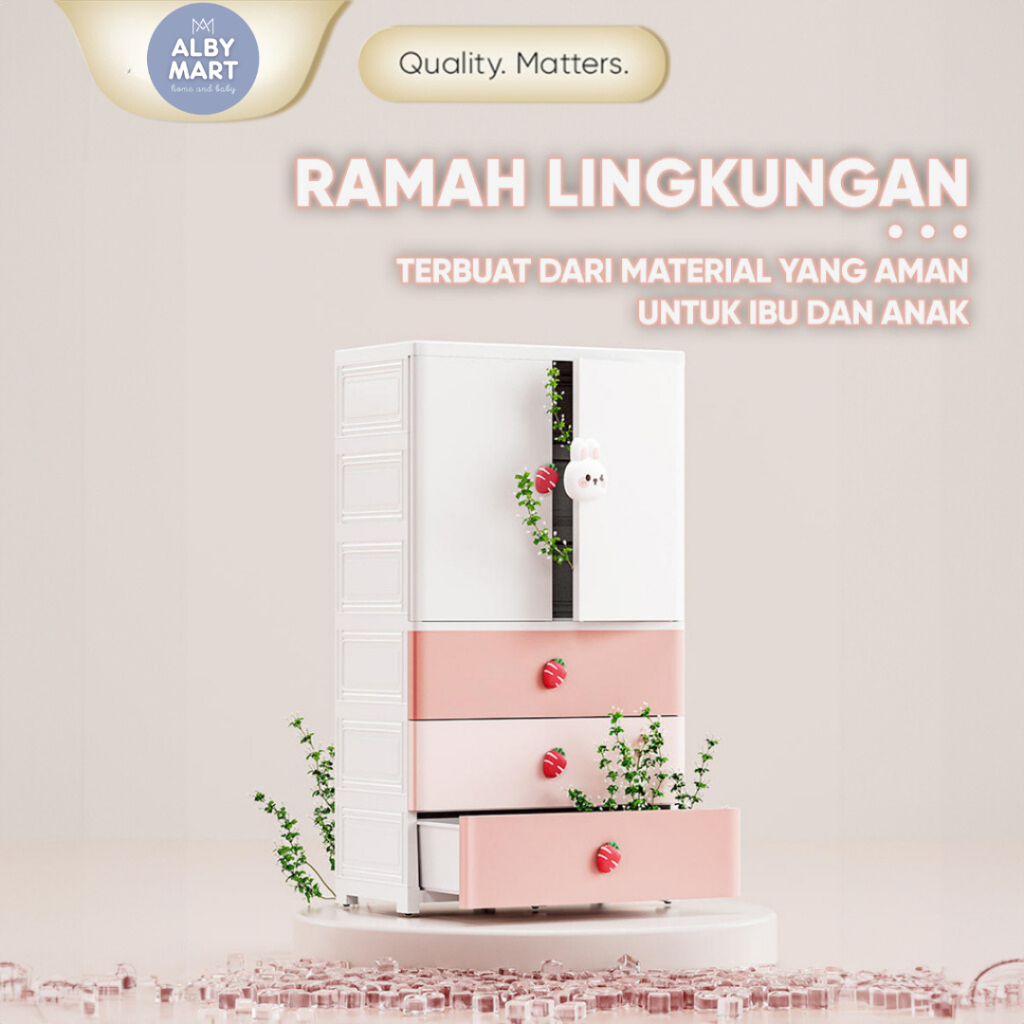 Lemari Plastik Berkualitas 2024 Kids Bunny Karakter Wardrobe Rak Pakaian Baju Serbaguna Jumbo