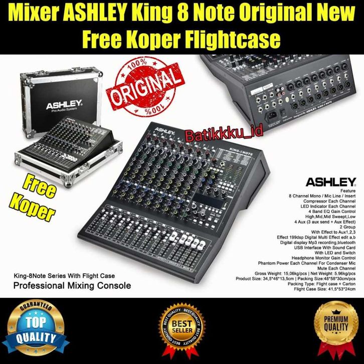 MIXER ASHLEY KING 8 NOTE KING8 NOTE 8CH ORIGINAL New With Compressor Koper Hardcase