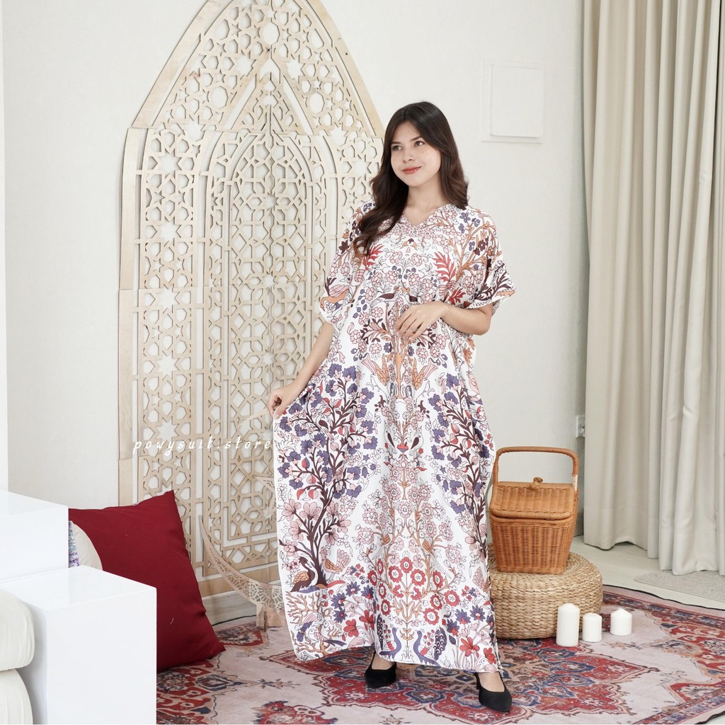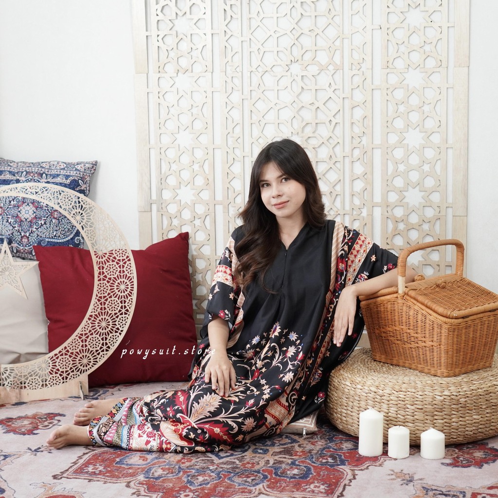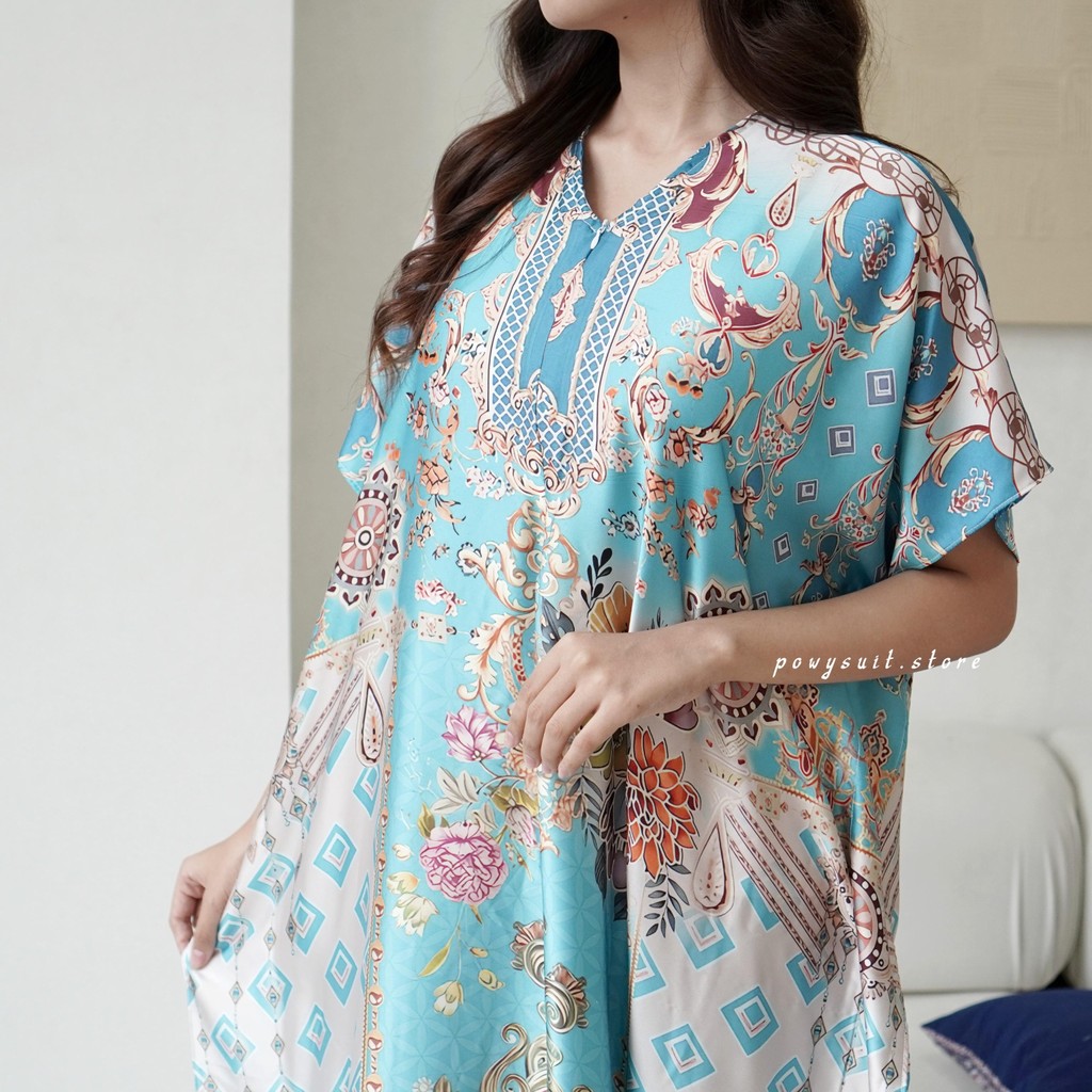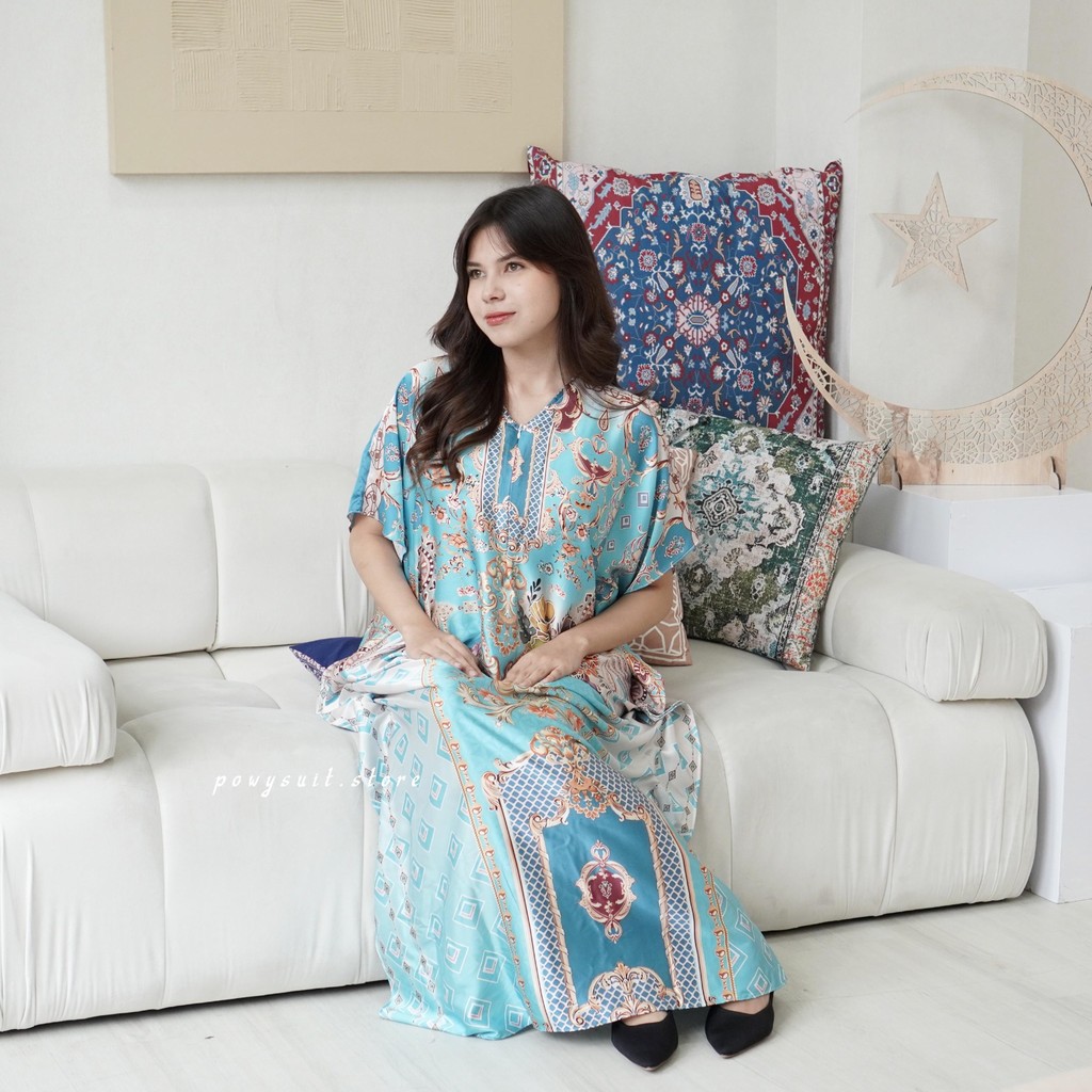 Kaftan Powysuit Lebaran Muslim Wanita Motif Satin Silk Dress Jumbo 2025