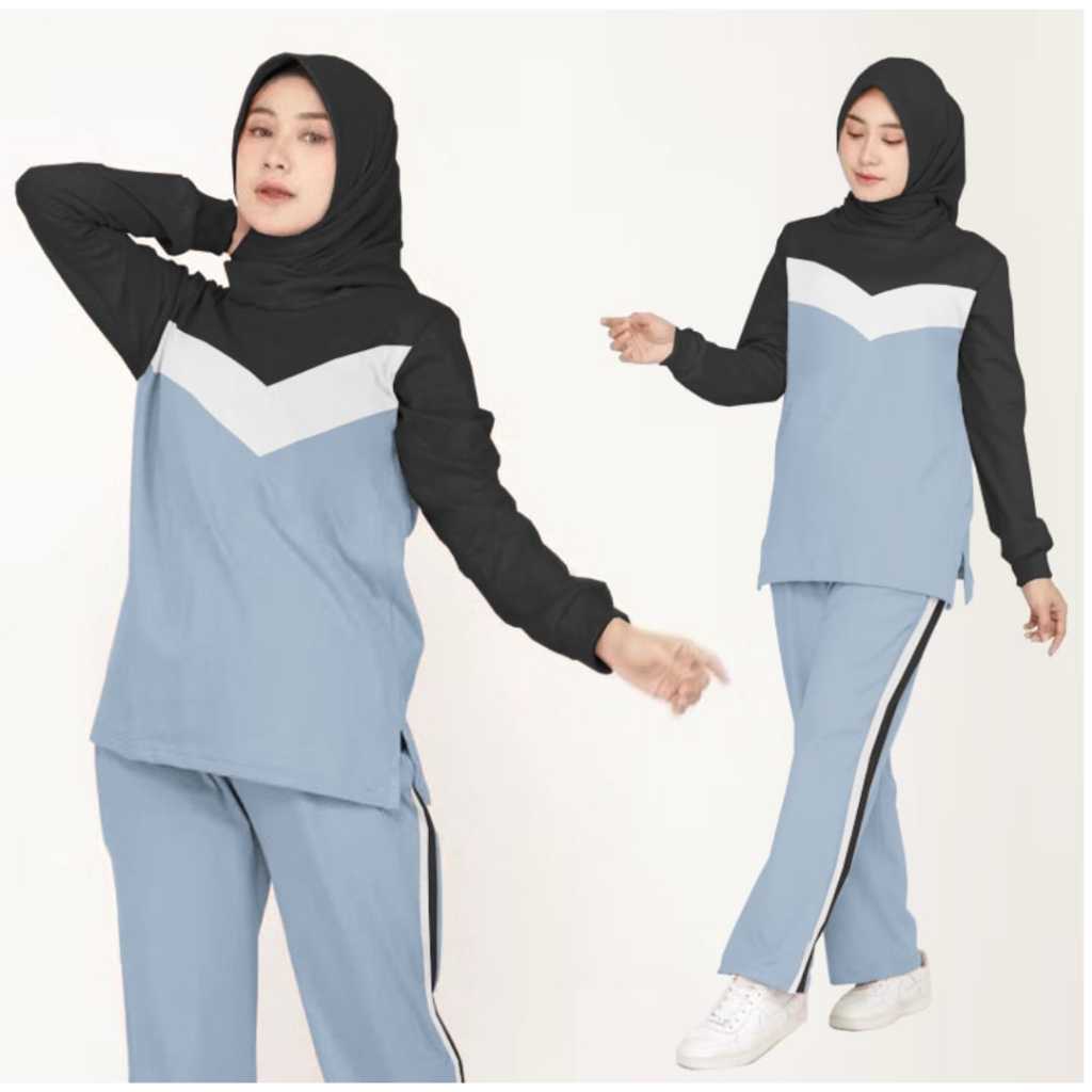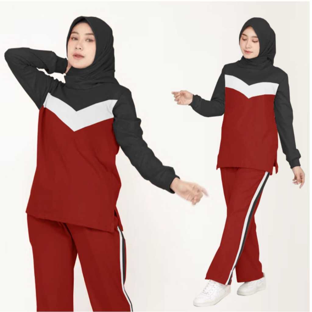 Setelan Baju Celana Panjang Wanita Olahraga Senam Training Muslimah Set Vina