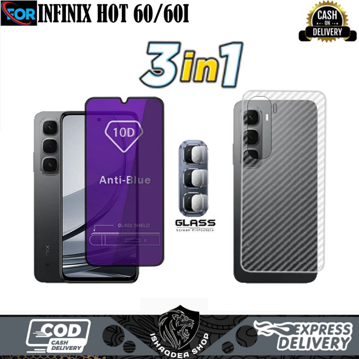 (TERMURAH)3IN1 TEMPERED GLASS PRIVACY INFINIX HOT 60 60I 60 PRO BONUS LENSA CAMERA+GARSKIN CARBON