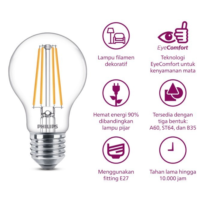 Lampu Philips Rumah Kamar Tidur Hias 6 Watt Led Bohlam fillament Essential Putih Murah
