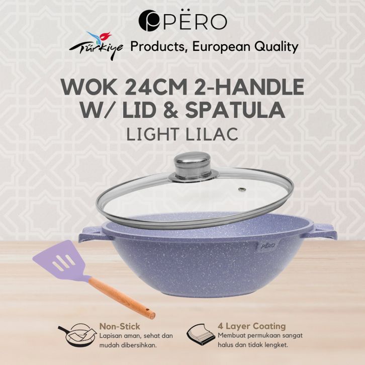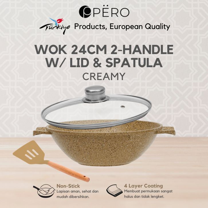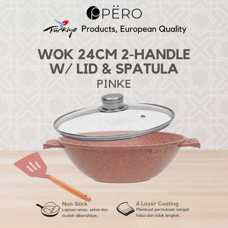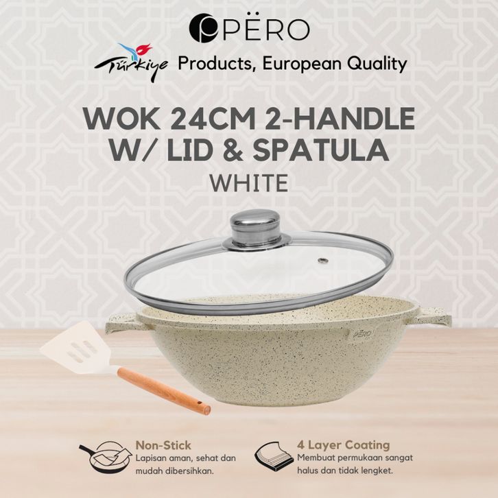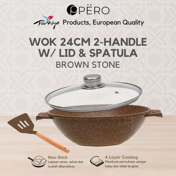 Wajan Anti Lengket Pero Wok 24cm Biogranite 2 Handle Glass Lid With Spatula Tutup Kaca