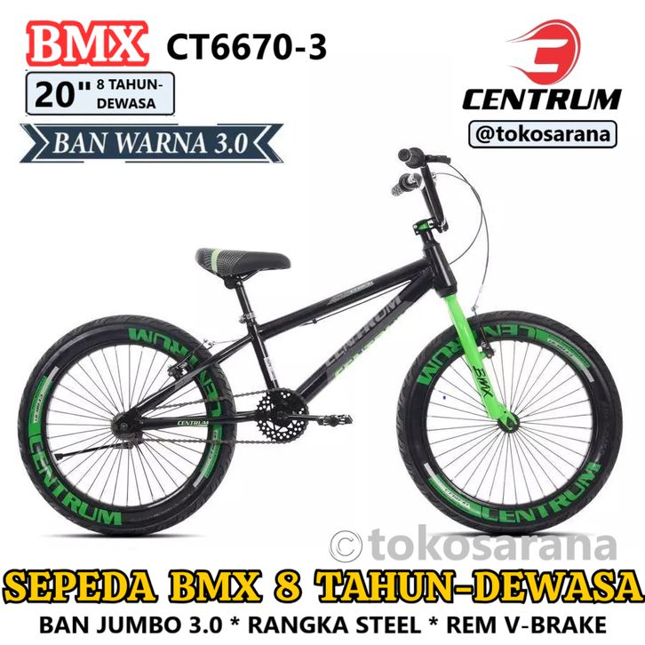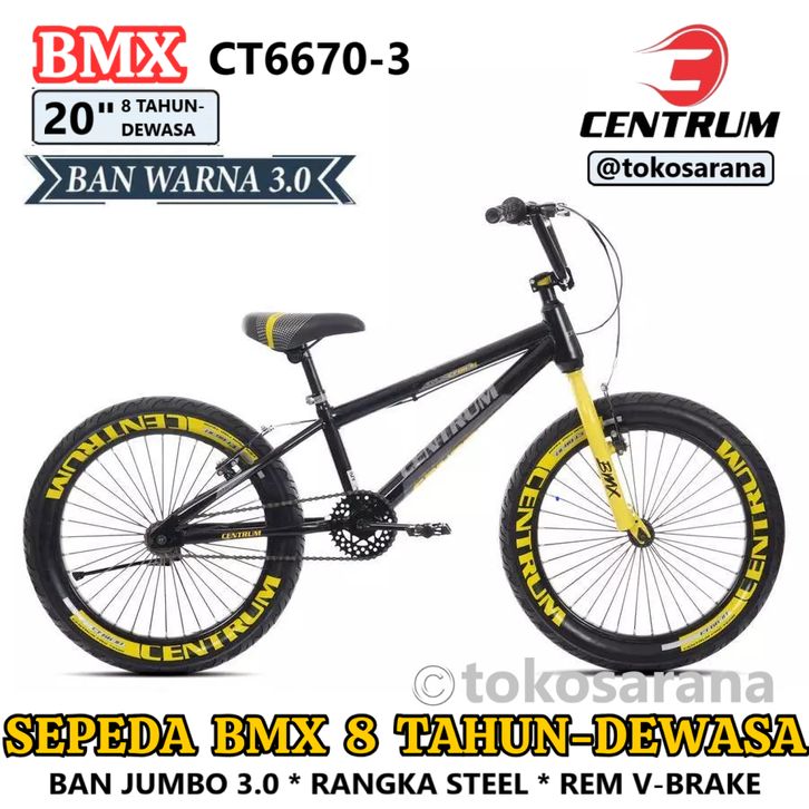 Sepeda BMX Anak 8 Tahun-Dewasa Centrum CT6628-3 CT6670 Ban Jumbo 2.40/3.0 20 Inci Steel Rem V-Brake