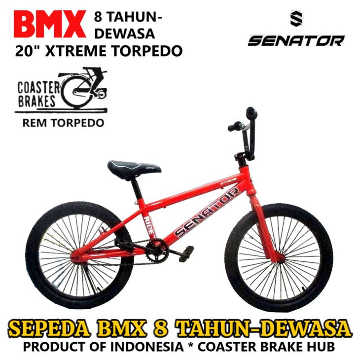 Sepeda BMX Senator Xtreme Toedo Remaja-Dewasa 20 Inci Back Pedal Gear Ratio 32T/16T Freestyle