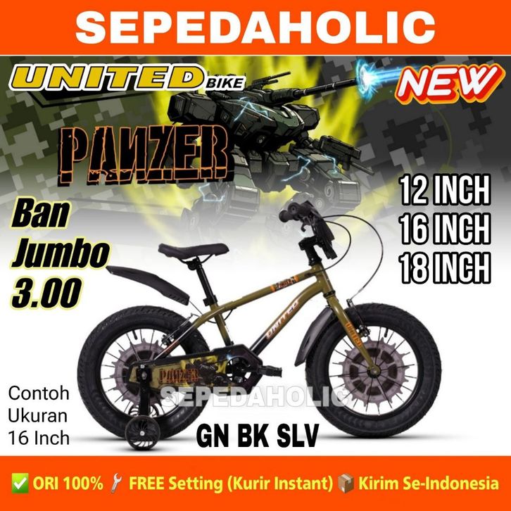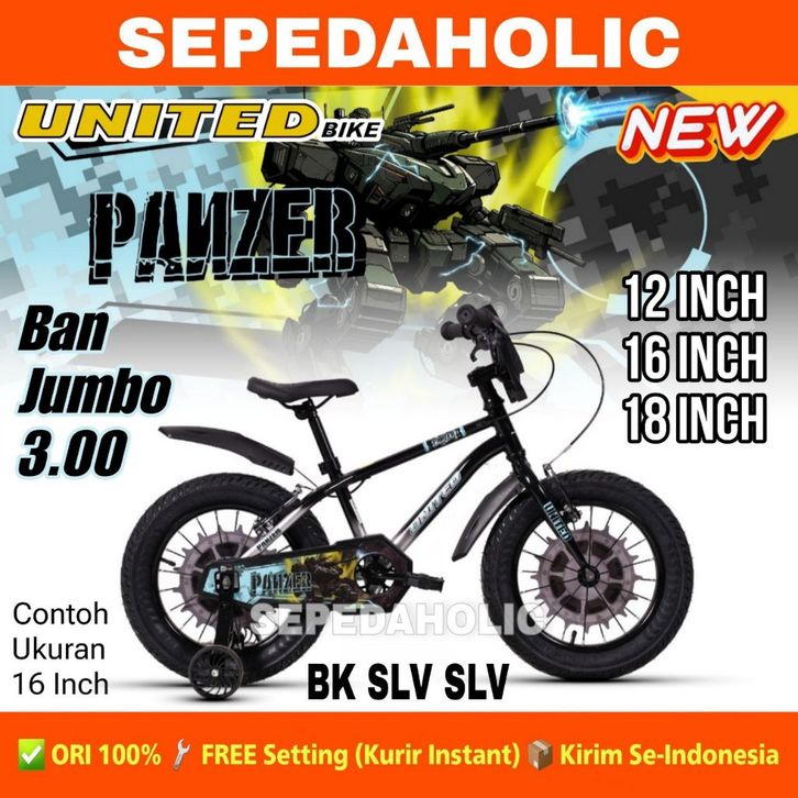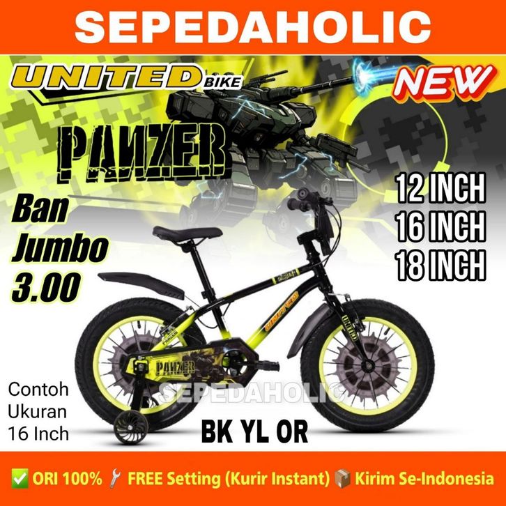 Sepeda Anak Laki BMX UNITED PANZER Ukuran 12 16 18 Inch Ban Jumbo 3.00 Usia 2-8 Tahun