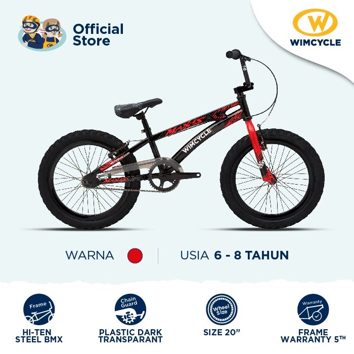 Sepeda Anak BMX 20" Wimcycle Maxxis 20 - Black Red