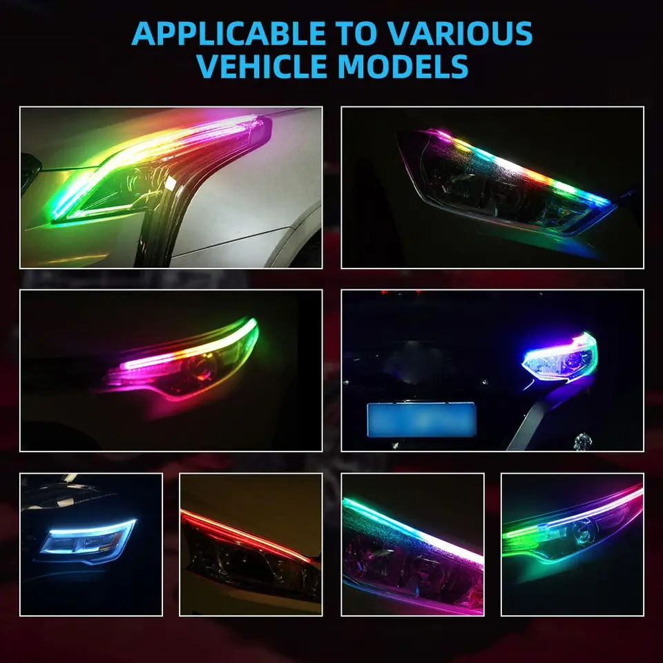 Lampu LED Alis DRL Slim Tempel Remote RGB + Sein Running - 30cm, 60cm 12 Volt harga 1set Lengkap