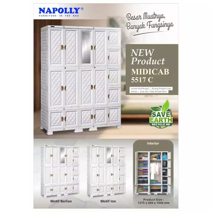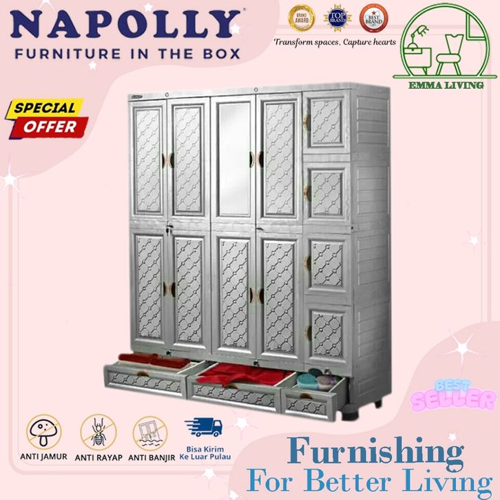 LEMARI PAKAIAN PLASTIK NAPOLLY 5 PINTU 4 SUSUN 3 KACA KUNCI JUMBO SUSUN RAKIT GANTUNG MINIMALIS BERKUALITAS 2024/2025