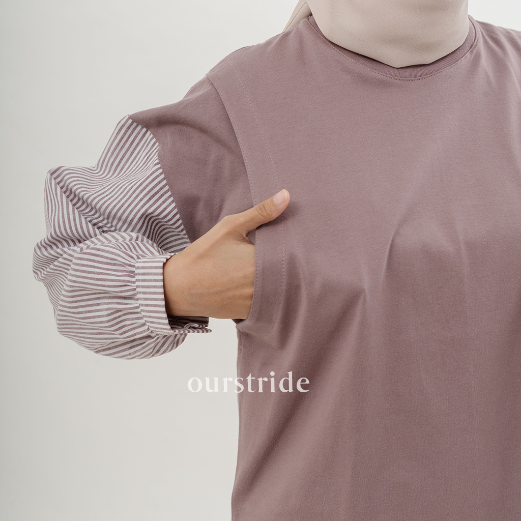 Ourstride Kyomi Stripe Blouse Oversized Baju Blus Kaos Kombinasi Kemeja Strip Busui Friendly Mudik