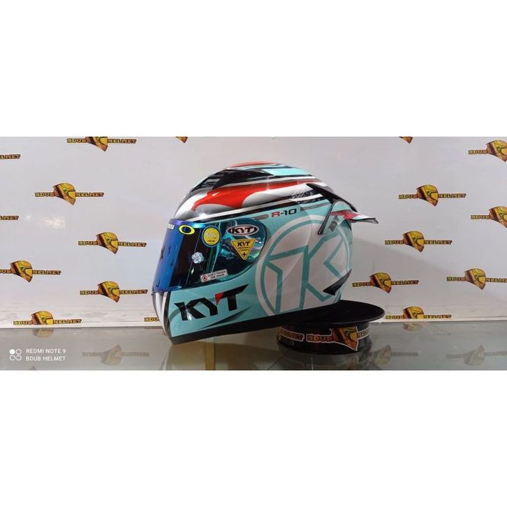 Helm Kyt r10 full face motif aqua marine paket ganteng visor flat iridium 100ORI