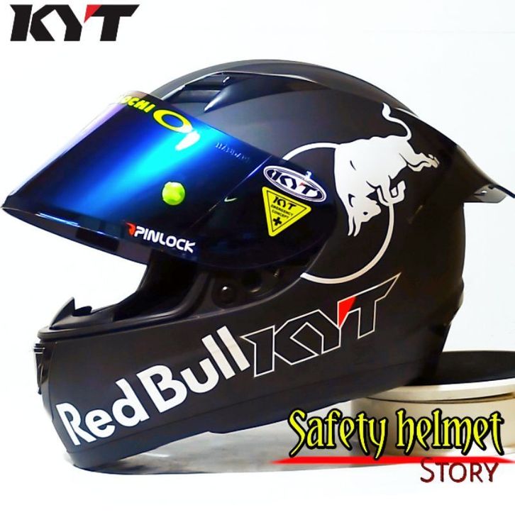 kyt R10- Modif Paket Ganteng Redbull Helm Fullface Solid Black mat/ Black doft