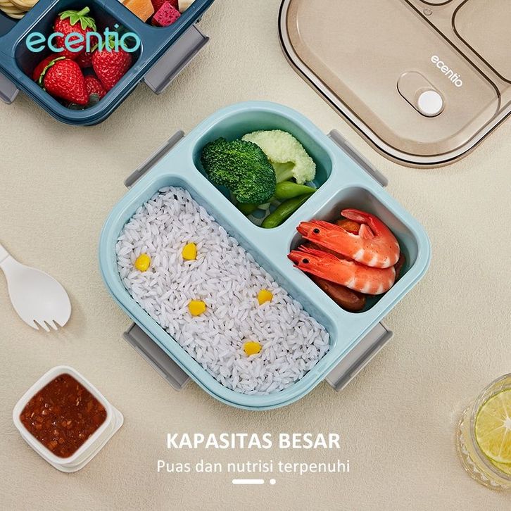 ecentio kotak makan anti tumpah 3 Sekat 1.1L free sendok dan toples 100ml BPA Free/Kotak Makan set anak/tempat makan