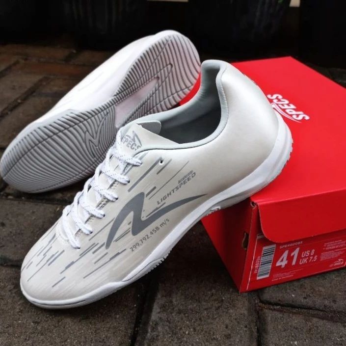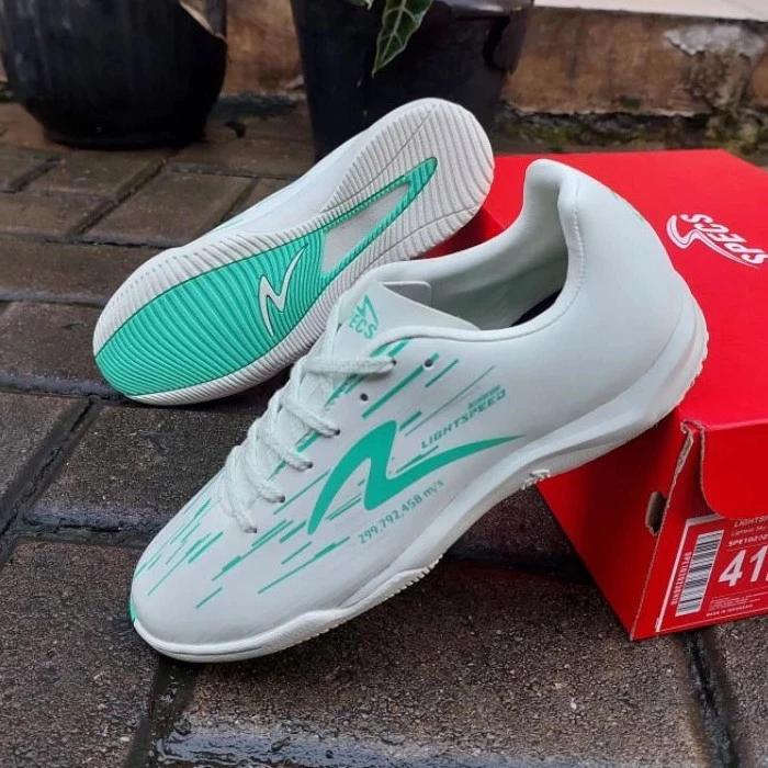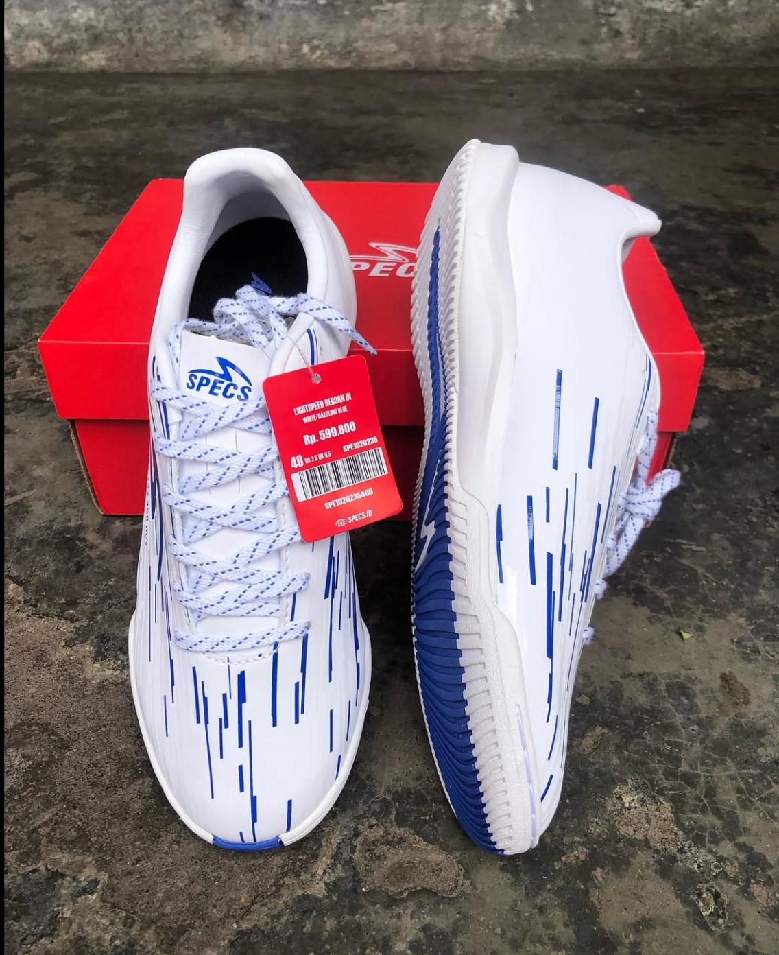 Sepatu Futsal Specs Lightspeed IN White Blue Original Desain Sporty Terbaru